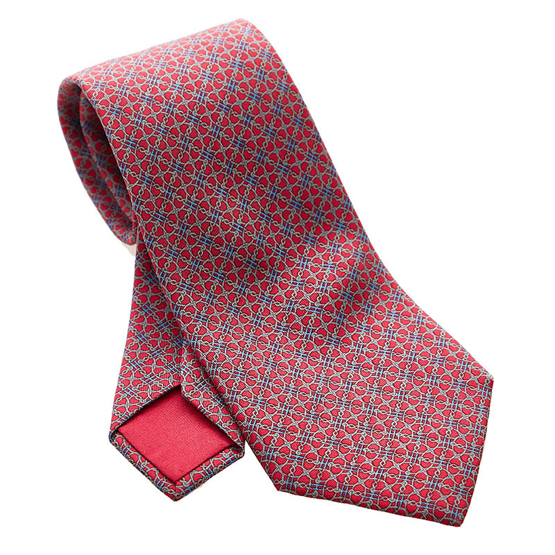 エルメス 総柄 ネクタイ レッド シルク メンズ HERMES 【中古】