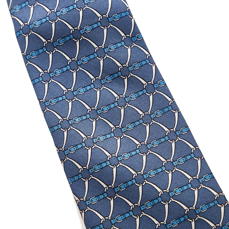 エルメス 総柄 ネクタイ ネイビー シルク メンズ HERMES 【中古】