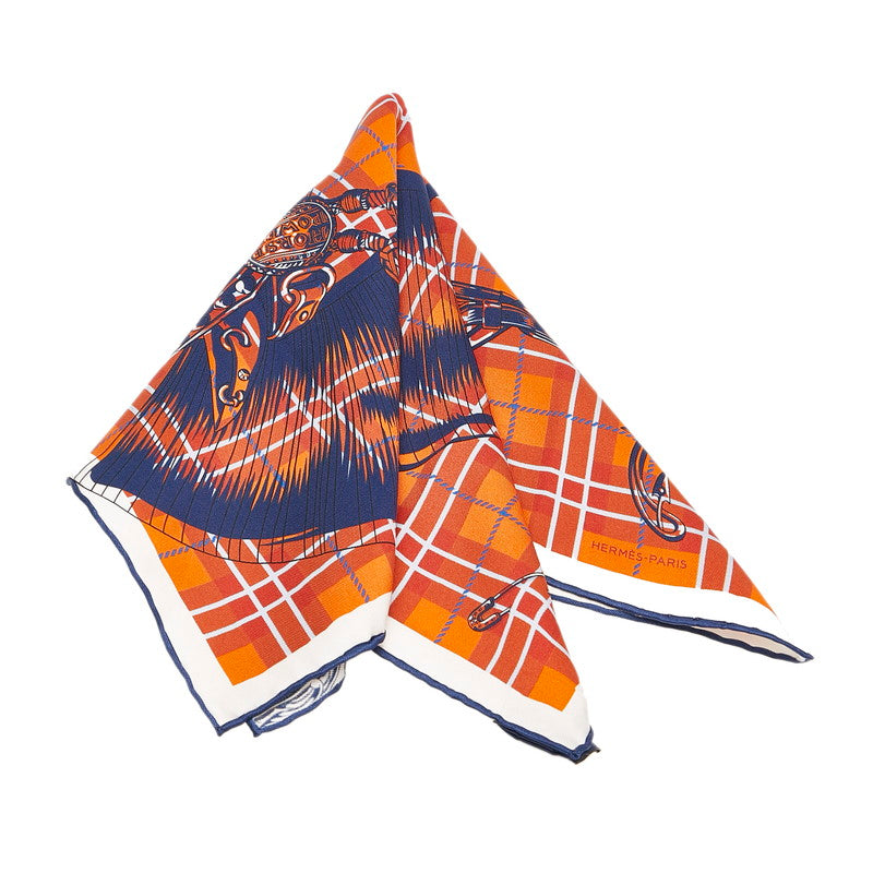 エルメス プチカレ40 HORSE POWER 馬力 スカーフ ネイビー オレンジ シルク レディース HERMES 【中古】
