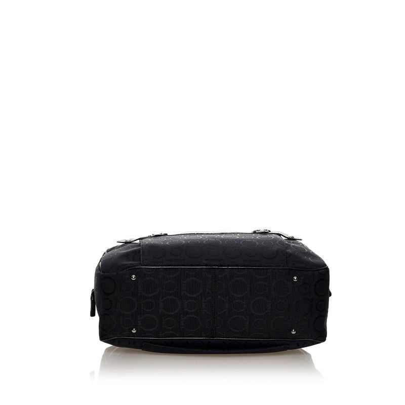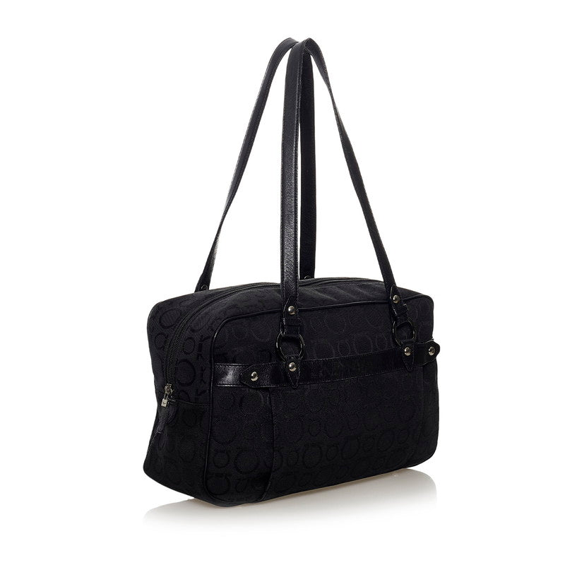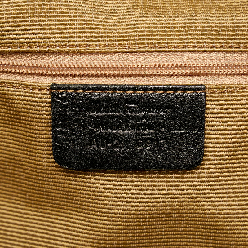 サルヴァトーレフェラガモ ガンチーニ ハンドバッグ AU-21 6917 ブラック キャンバス レザー レディース Salvatore Ferragamo 【中古】