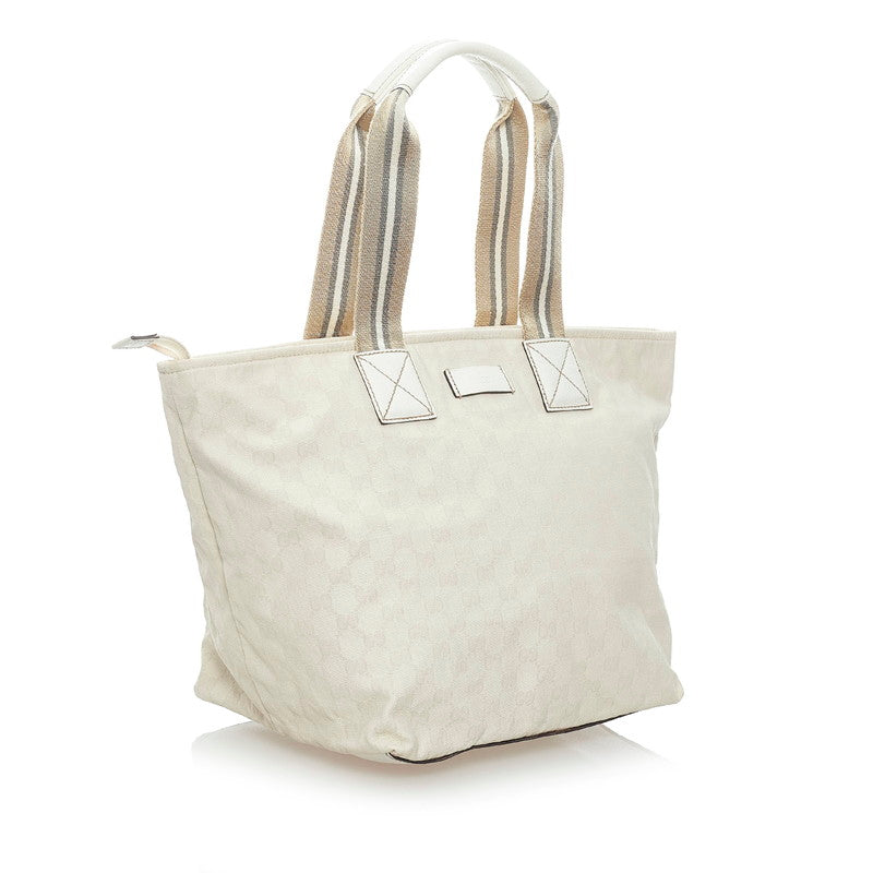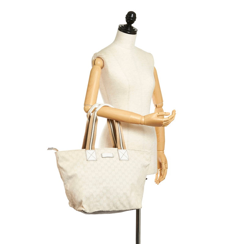 グッチ GGキャンバス シェリーライン トートバッグ 131231 ホワイト キャンバス レザー レディース GUCCI 【中古】