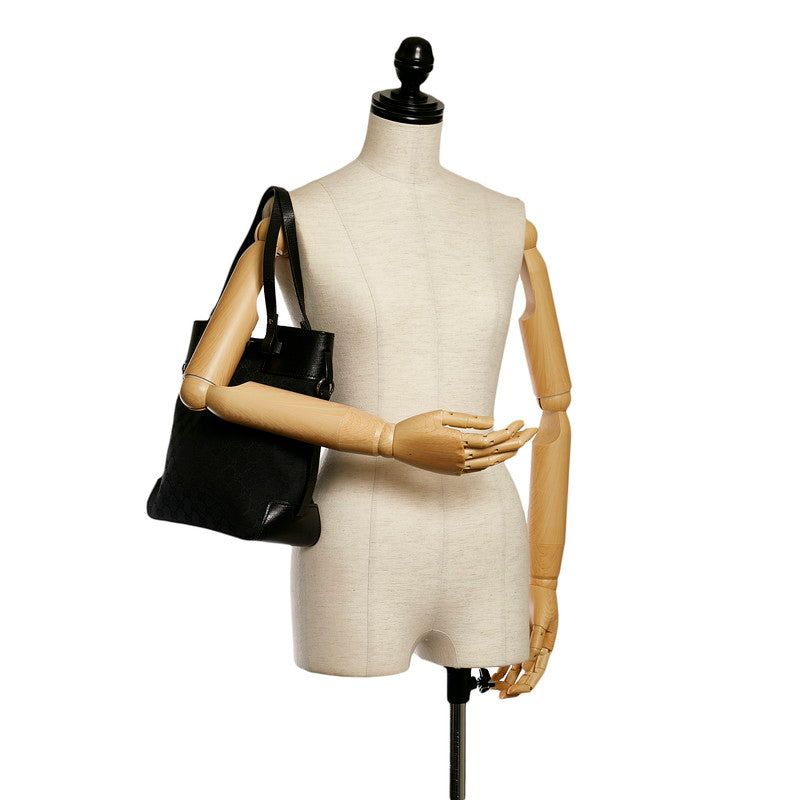 グッチ GGキャンバス トートバッグ 107757 ブラック キャンバス レザー レディース GUCCI 【中古】