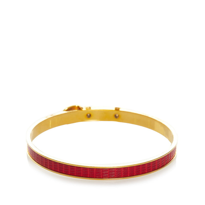 エルメス ベルト バックルモチーフ バングル レッド メッキ レザー レディース HERMES 【中古】