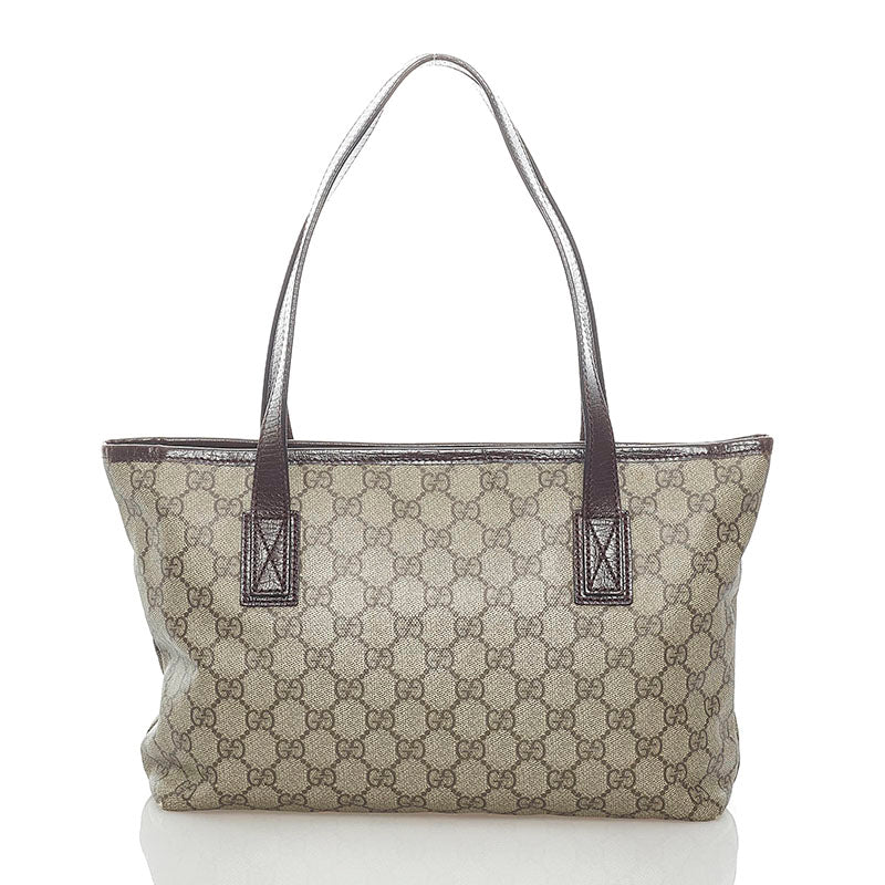グッチ GGスプリーム トートバッグ 181086 ベージュ ブラウン PVC レザー レディース GUCCI 【中古】