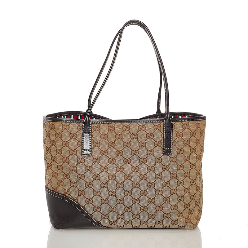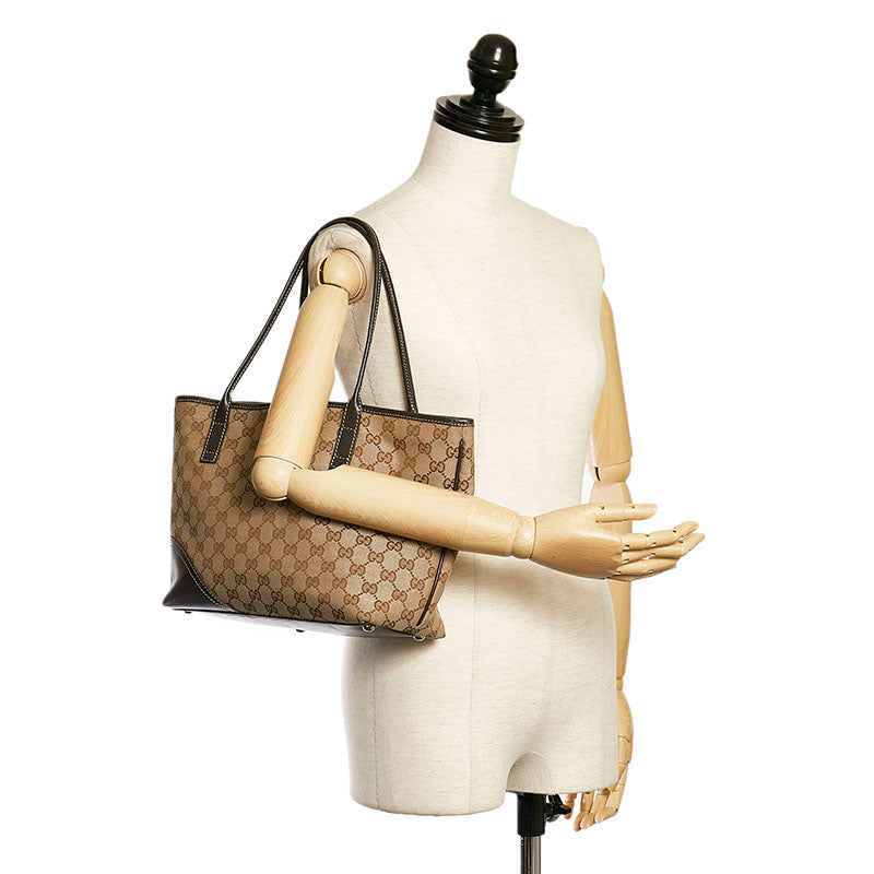 グッチ GGキャンバス インターロッキングG トートバッグ 169946 ベージュ ブラウン キャンバス レザー レディース GUCCI 【中古】