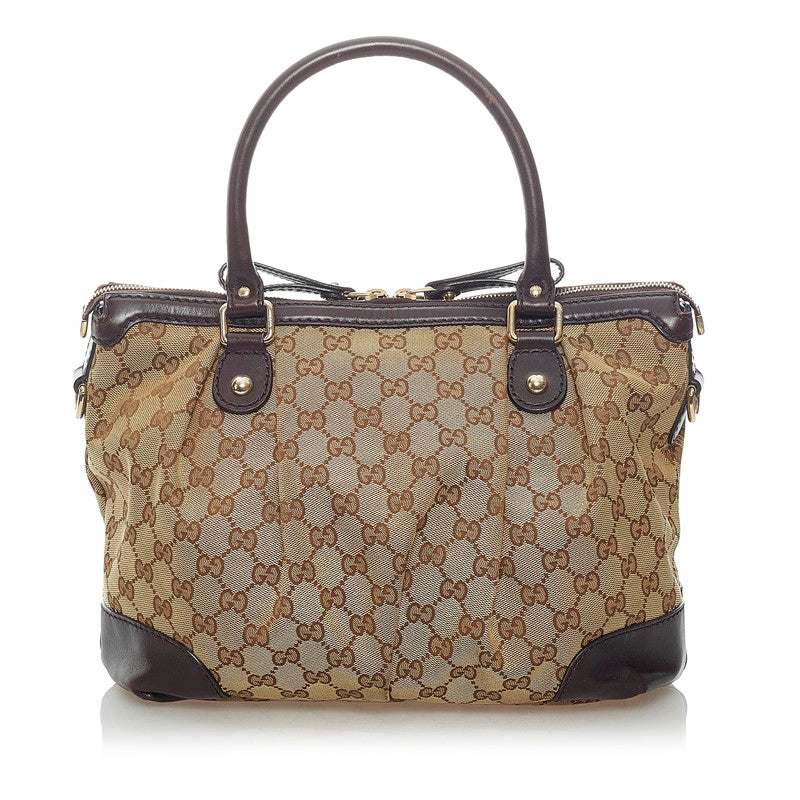 グッチ GGキャンバス ハンドバッグ ショルダーバッグ 2WAY 247902 ベージュ ブラウン キャンバス レザー レディース GUCCI 【中古】