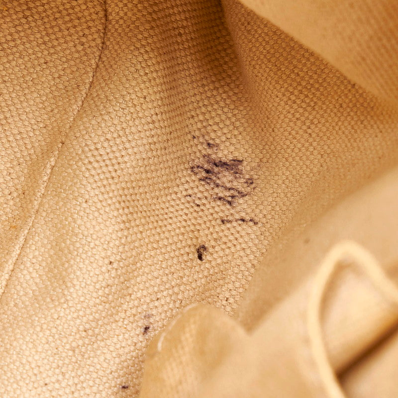 外側⇒レザー部分にスレ・線キズ 底面⇒角スレ・フチスレ ハンドル⇒スレ・小キズ 金具⇒小キズ・くすみ 内側⇒複数個所にペン跡・ヤケ |