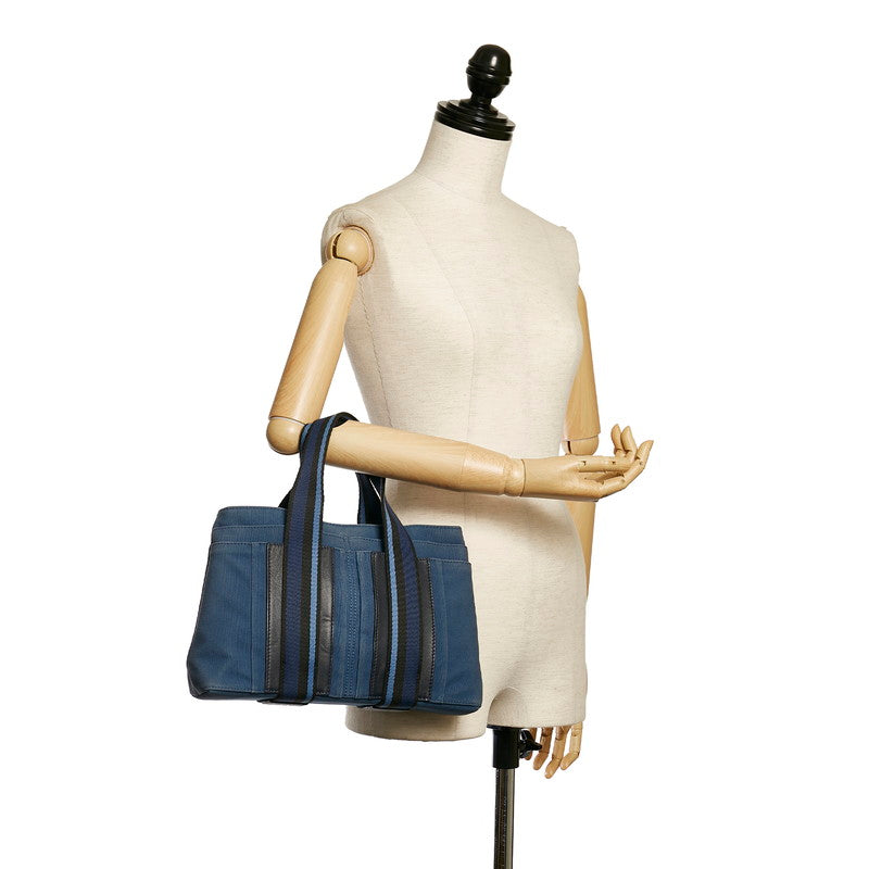 エルメス トロカ ホリゾンタル PM ハンドバッグ トートバッグ ブルー キャンバス レザー レディース HERMES 【中古】