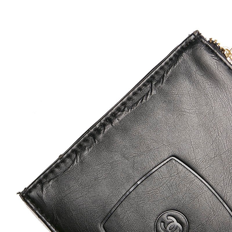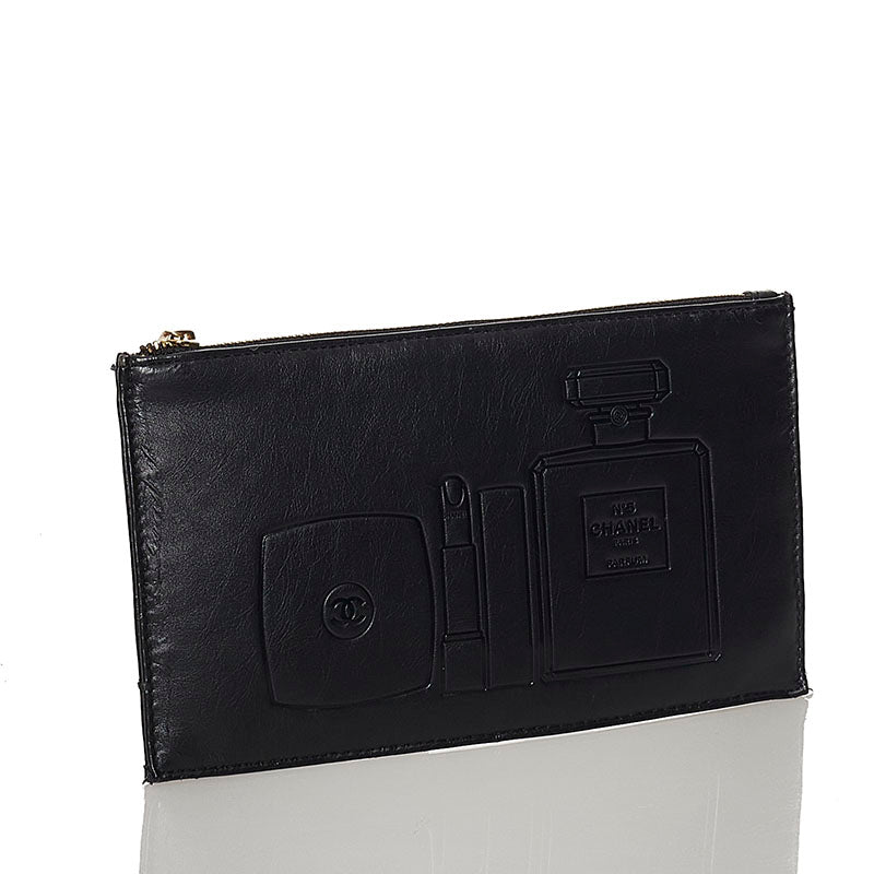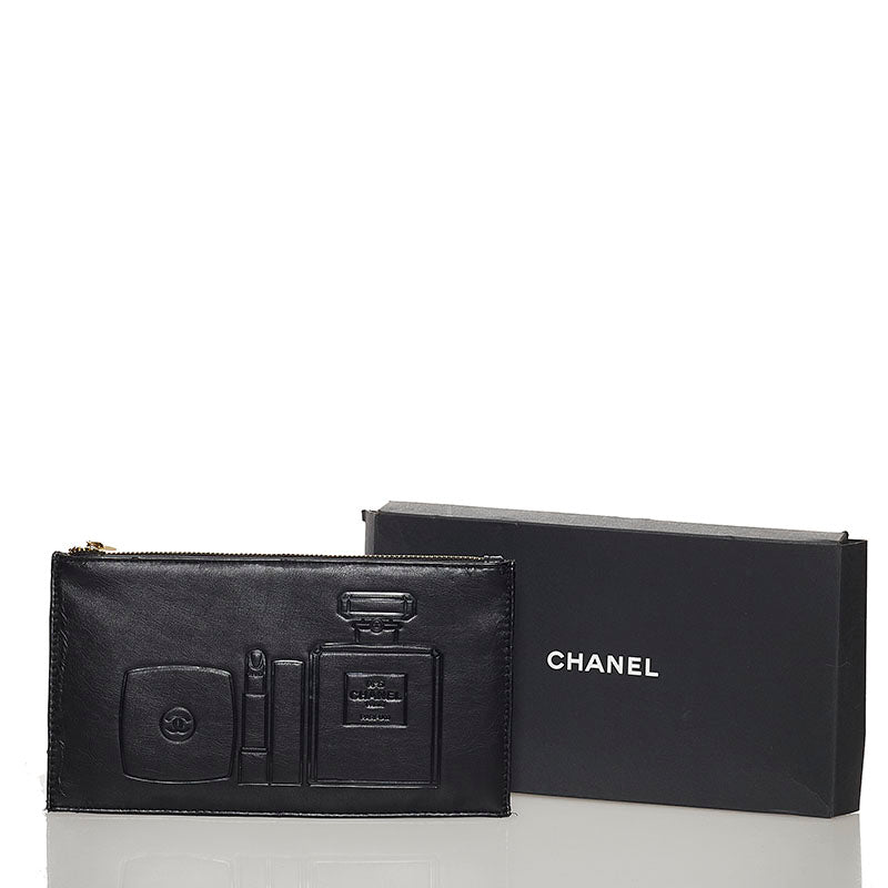 シャネル ノベルティー ポーチ ブラック レザー レディース CHANEL 【中古】
