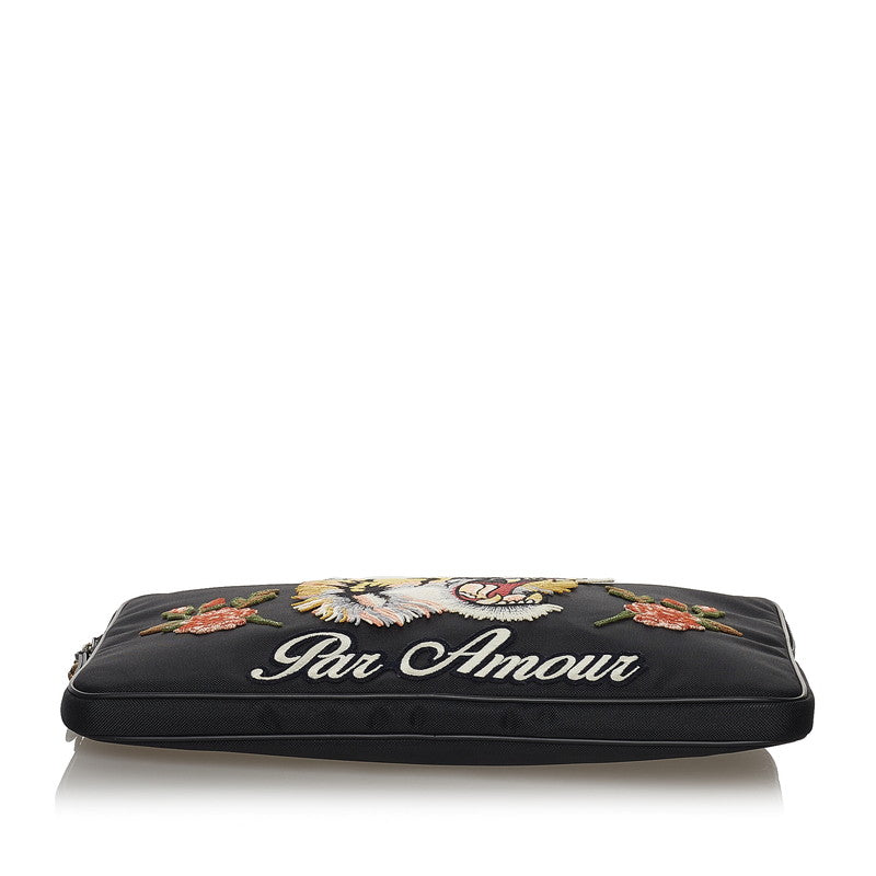 グッチ エンブロイダリー タイガー クラッチバッグ ラップトップケース 473884 ブラック キャンバス レディース GUCCI 【中古】