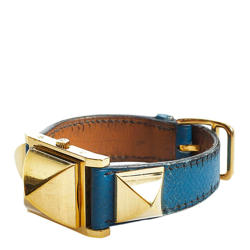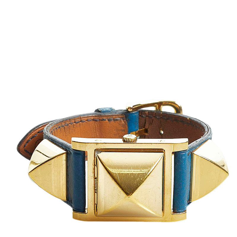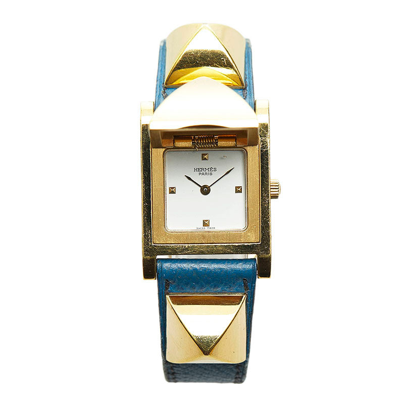 エルメス メドール 腕時計 クオーツ ホワイト文字盤 メッキ レザー レディース HERMES 【中古】