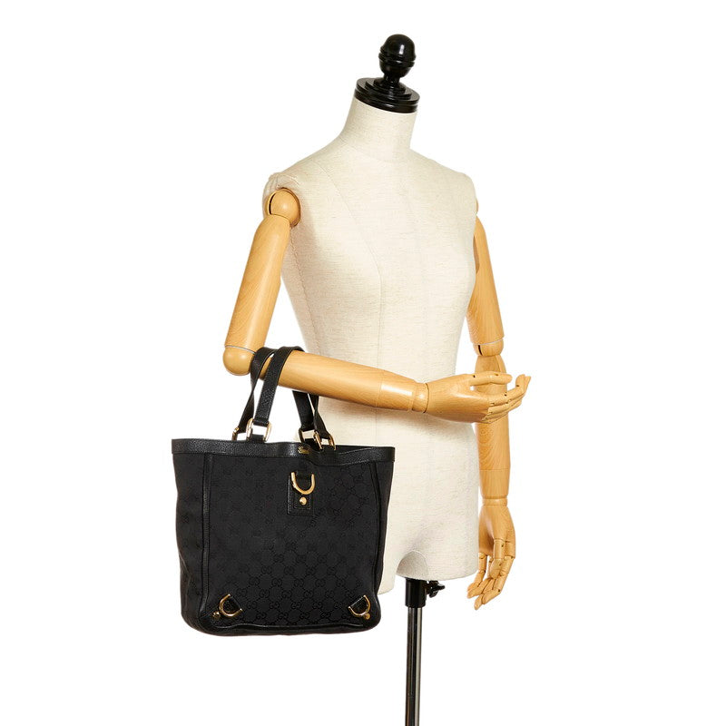 グッチ GGキャンバス アビー ハンドバッグ 130739 ブラック キャンバス レザー レディース GUCCI 【中古】
