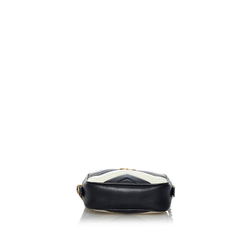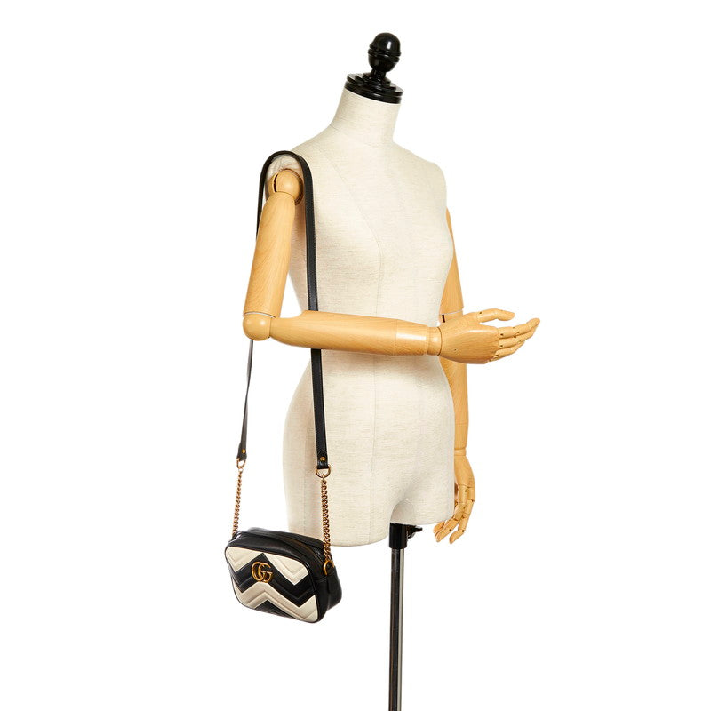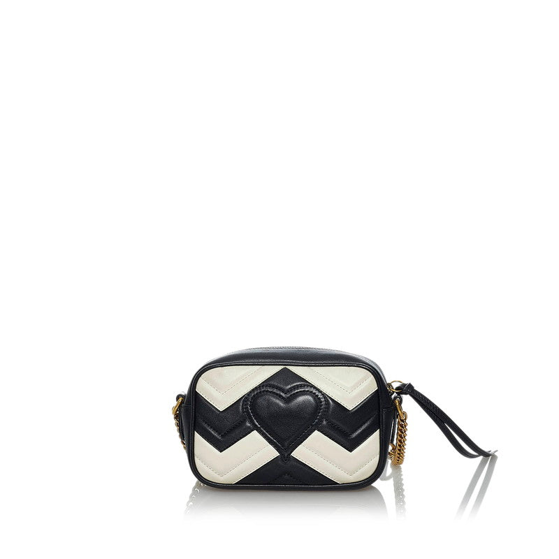 グッチ GGマーモント ハート 斜め掛け チェーン ショルダーバッグ 448065 ブラック ホワイト レザー レディース GUCCI 【中古】