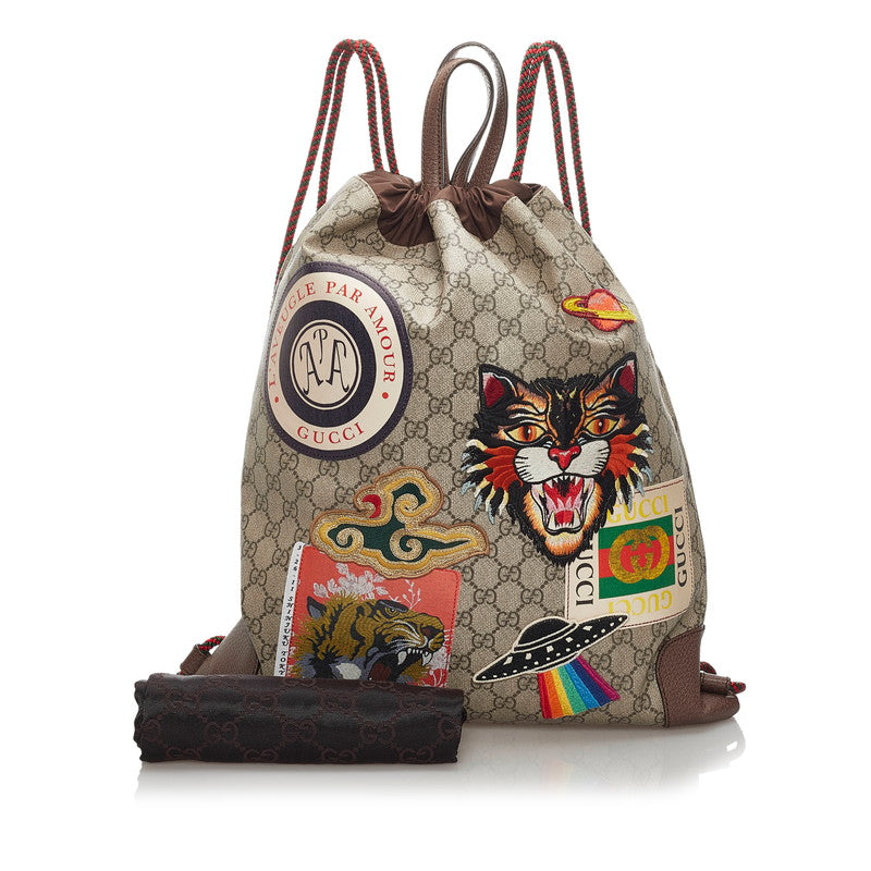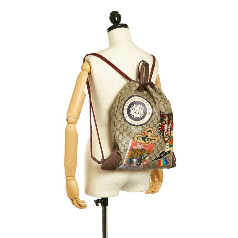 グッチ GGスプリーム クーリエ リュック バックパック 473872 ブラウン PVC レザー メンズ GUCCI 【中古】