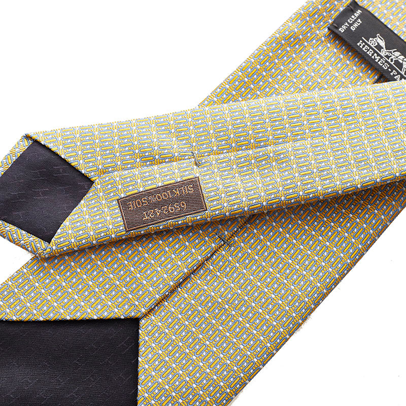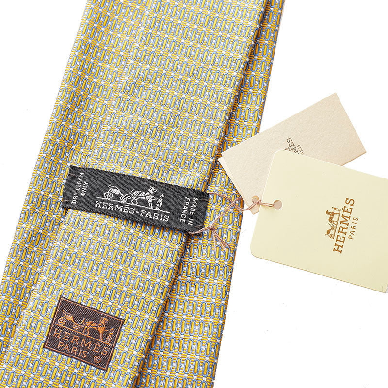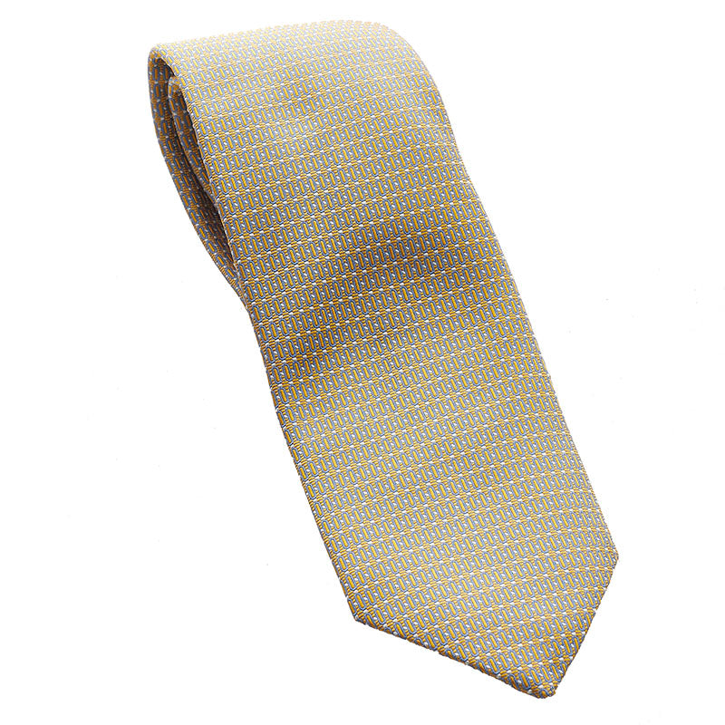 エルメス ネクタイ グレー イエロー シルク メンズ HERMES 【中古】