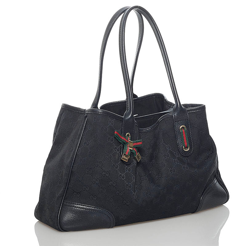 グッチ GGキャンバス プリンシー リボン ショルダーバッグ トートバッグ 163805 ブラック キャンバス レザー レディース GUCCI 【中古】