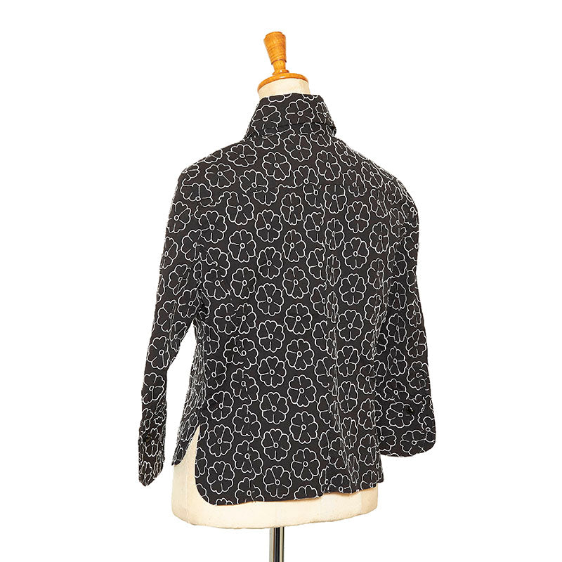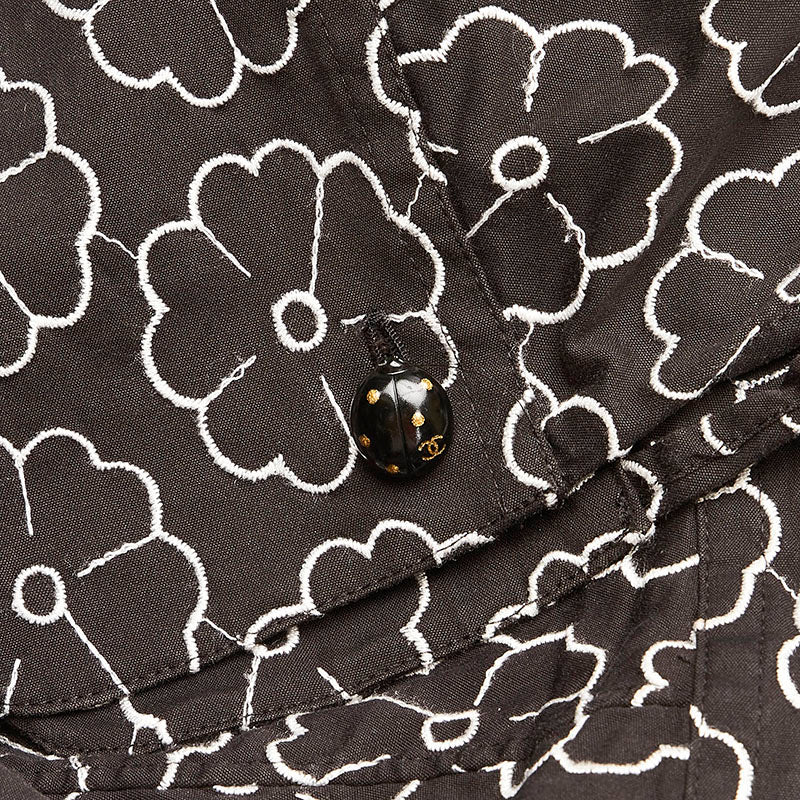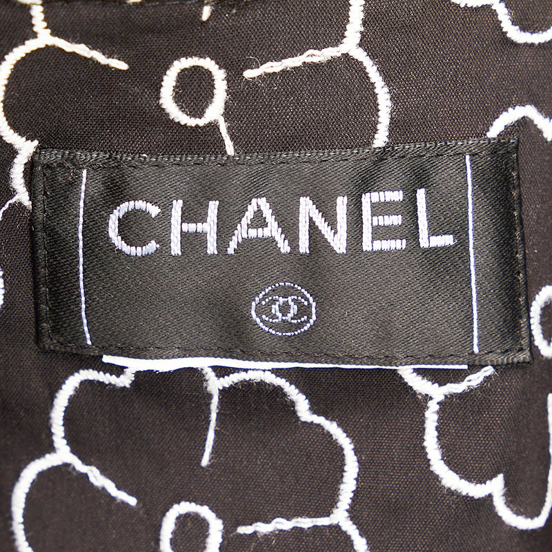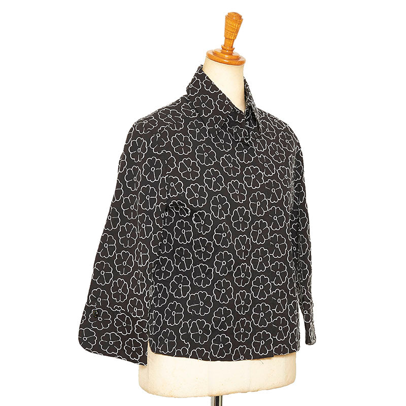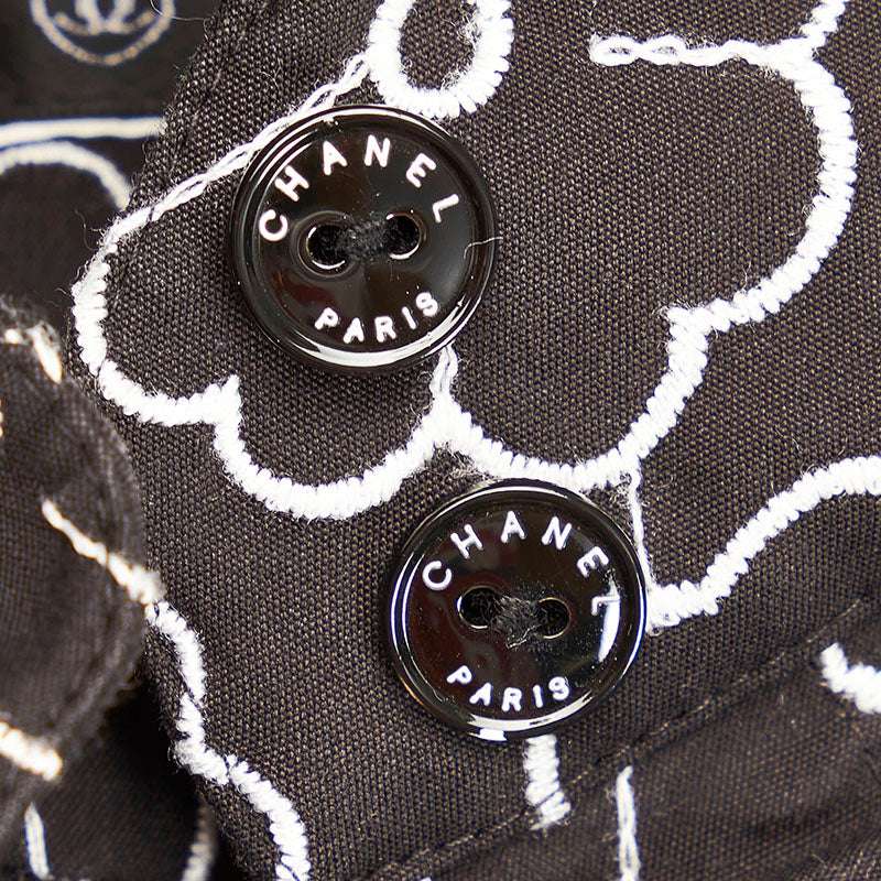 シャネル カメリア エンブロイダリー 総柄 7分丈 長袖シャツ ブラック コットン ナイロン スパンデックス レディース CHANEL 【中古】