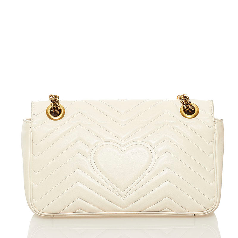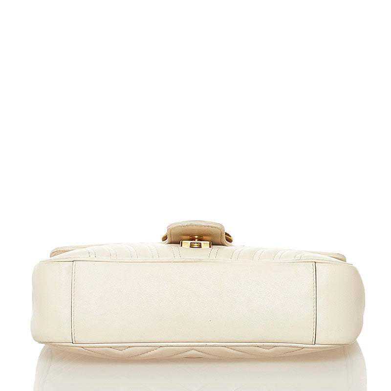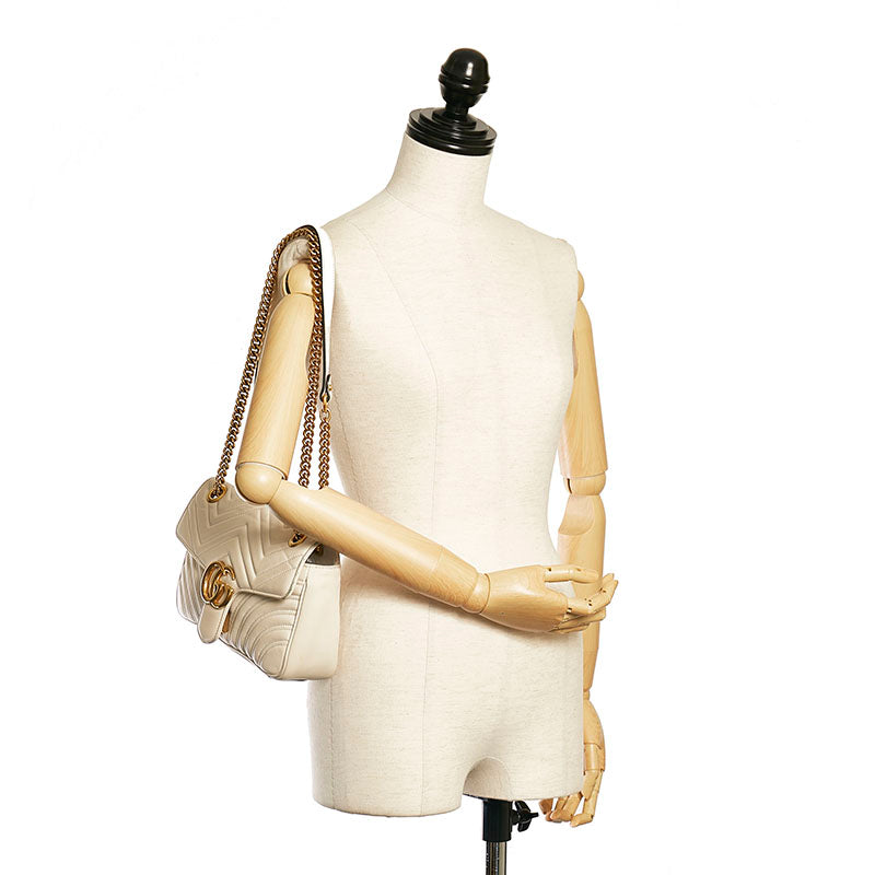 グッチ GGマーモント キルティング ミニ チェーン ショルダーバッグ 443497 ホワイト レザー レディース GUCCI 【中古】
