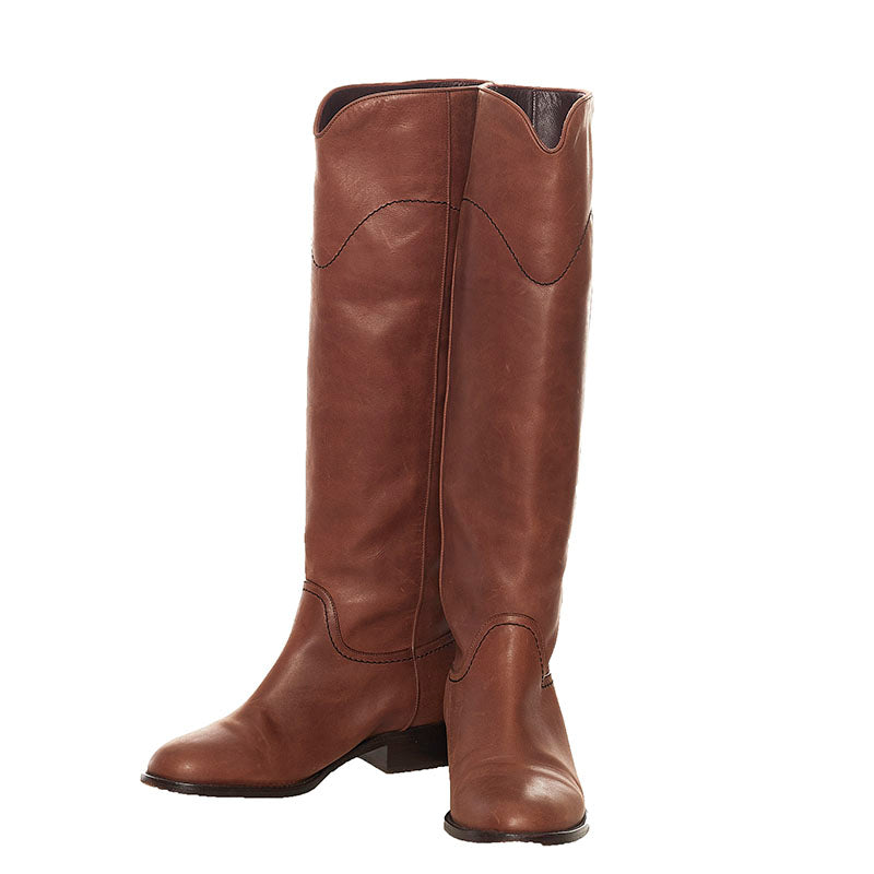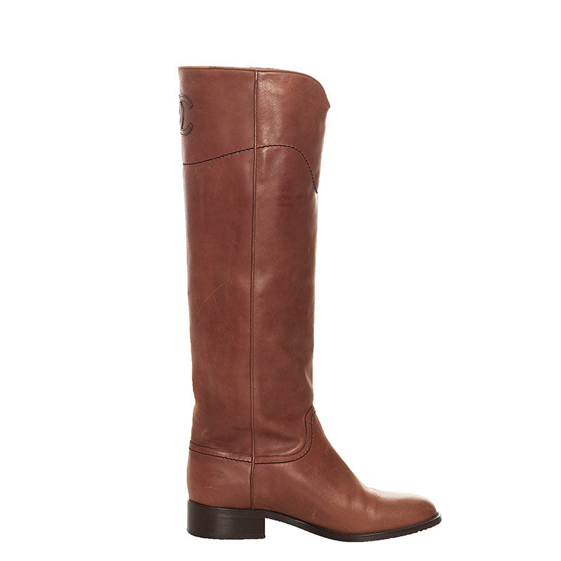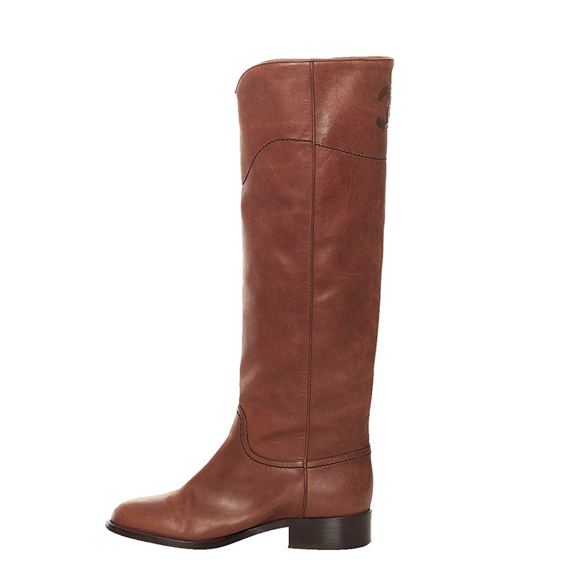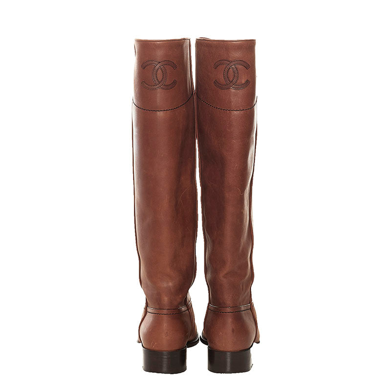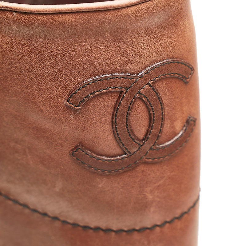 シャネル ココマーク ロングブーツ ブラウン レザー レディース CHANEL 【中古】