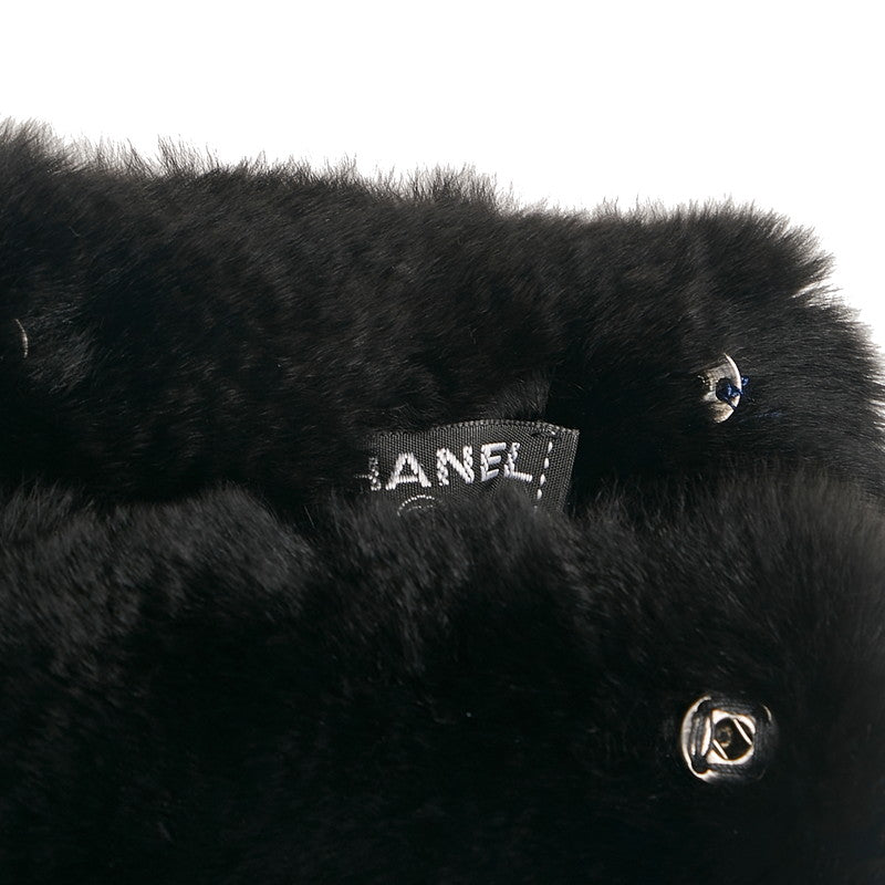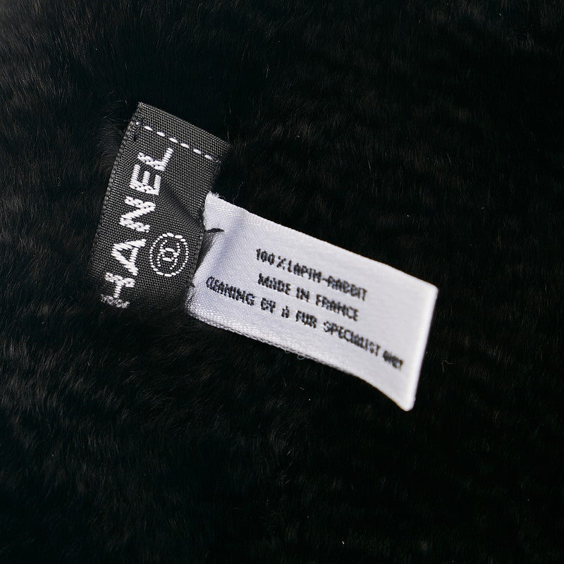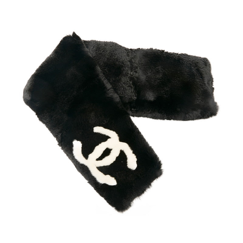 シャネル ココマーク マフラー ブラック ホワイト ラビットファー レディース CHANEL 【中古】