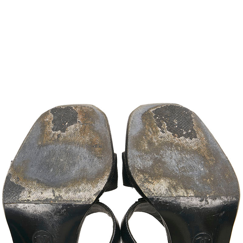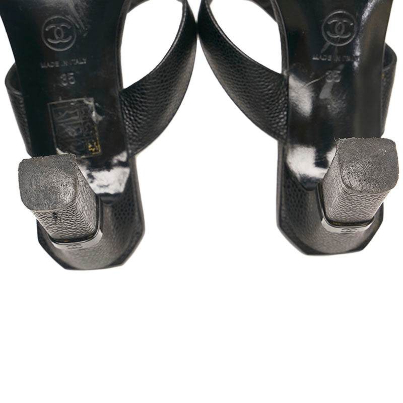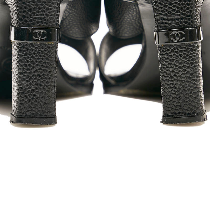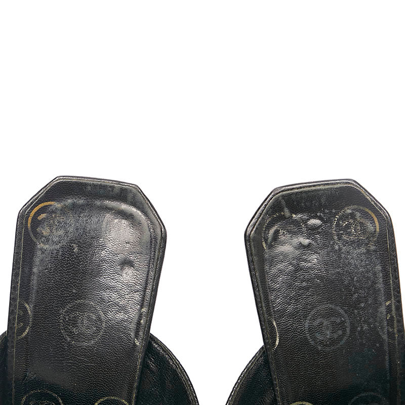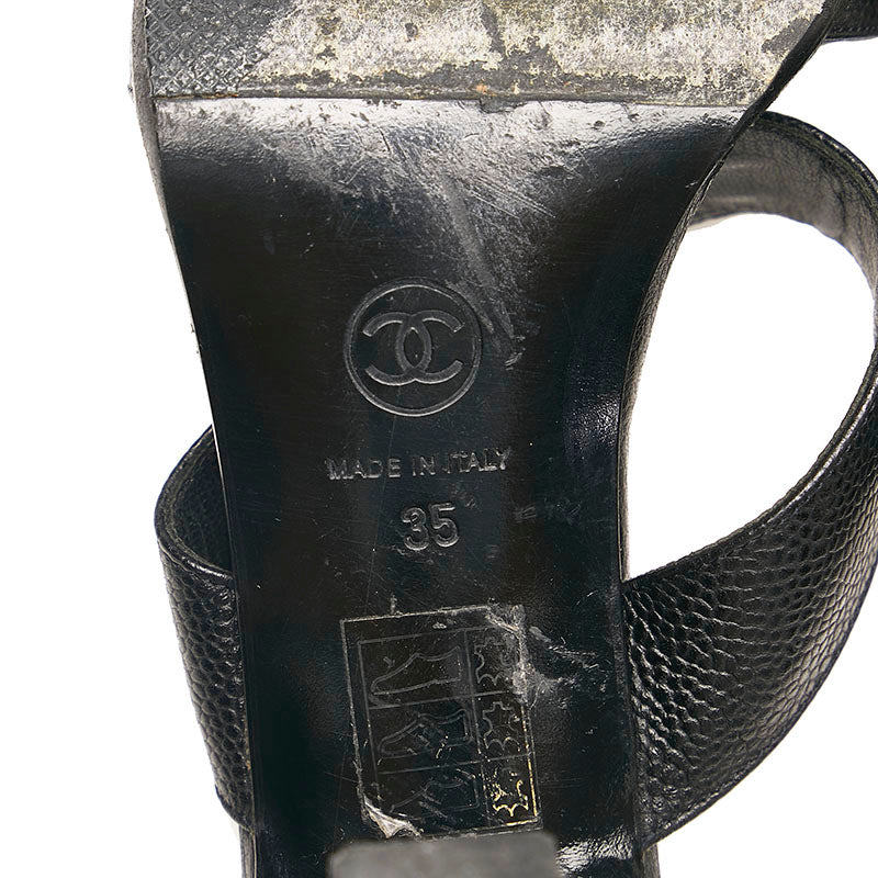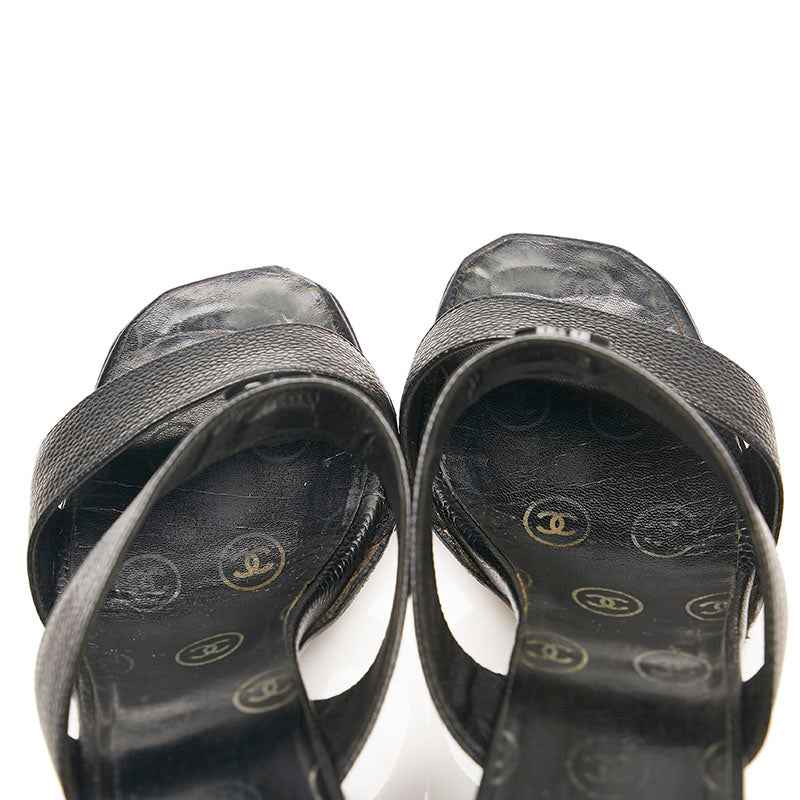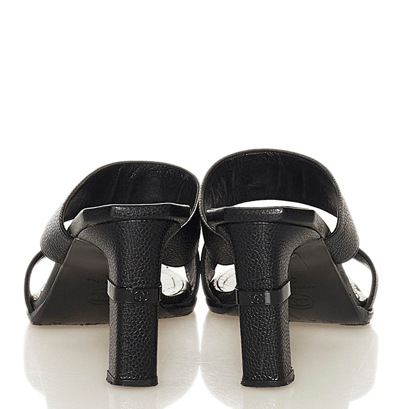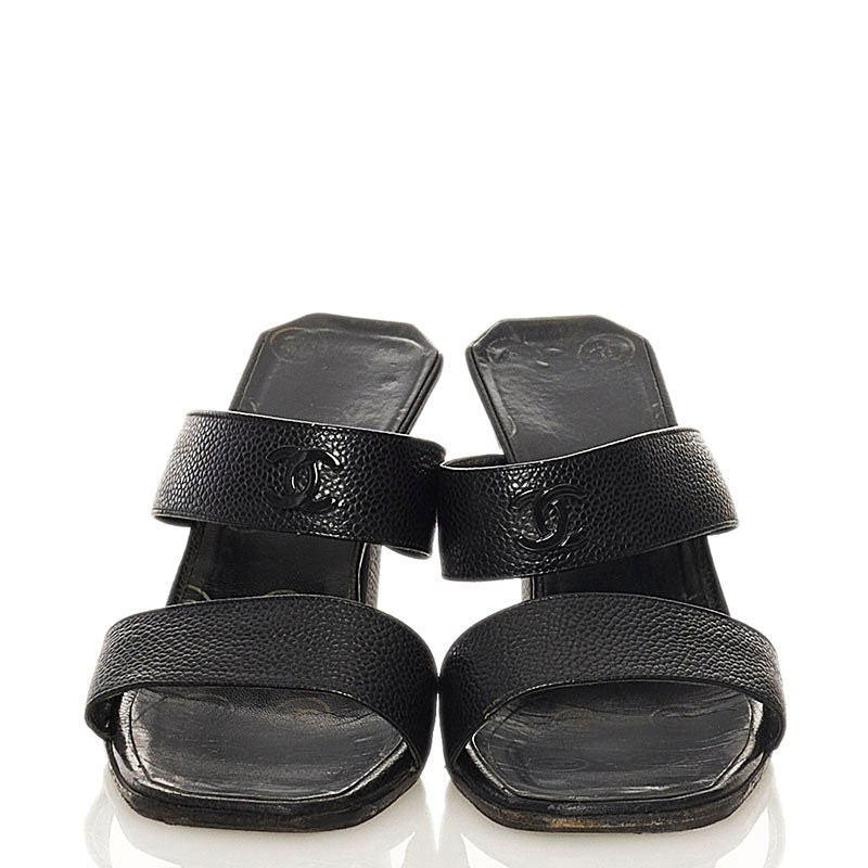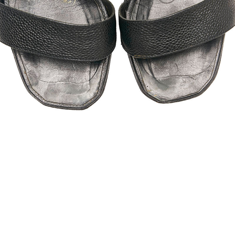 シャネル ココマーク ミュール サンダル ブラック キャビアスキン レディース CHANEL 【中古】