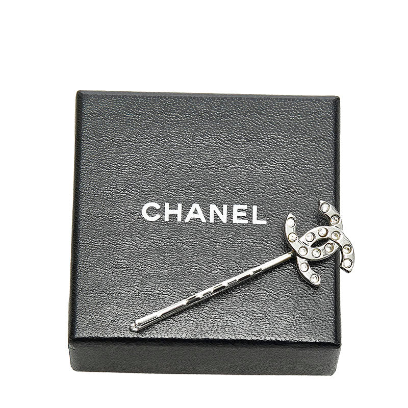 シャネル ココマーク ラインストーン ヘアピン シルバー メタル レディース CHANEL 【中古】