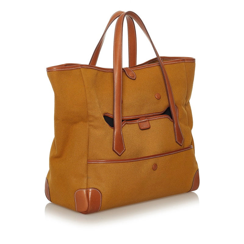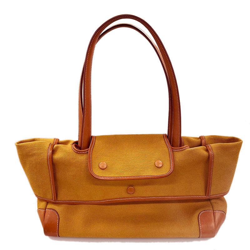エルメス パスパス 35 ショルダーバッグ トートバッグ 2WAY マスタード キャンバス レザー レディース HERMES 【中古】