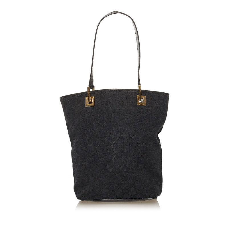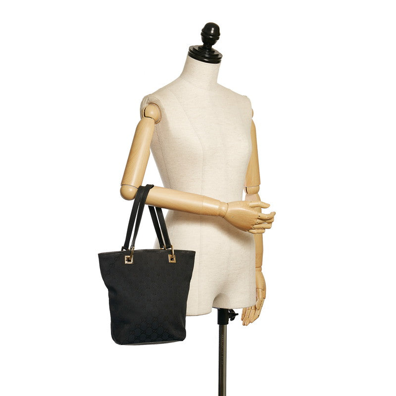 グッチ GGキャンバス ハンドバッグ 0021099 ブラック キャンバス レザー レディース GUCCI 【中古】