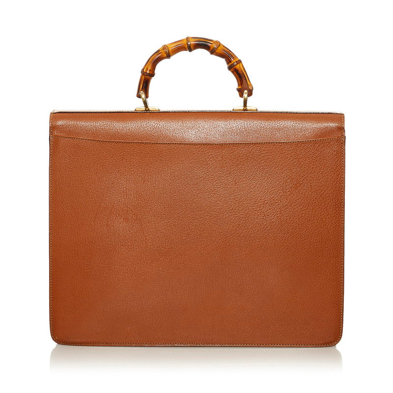 グッチ バンブー ビジネスバッグ ブリーフケース 0151046 ブラウン レザー メンズ GUCCI 【中古】