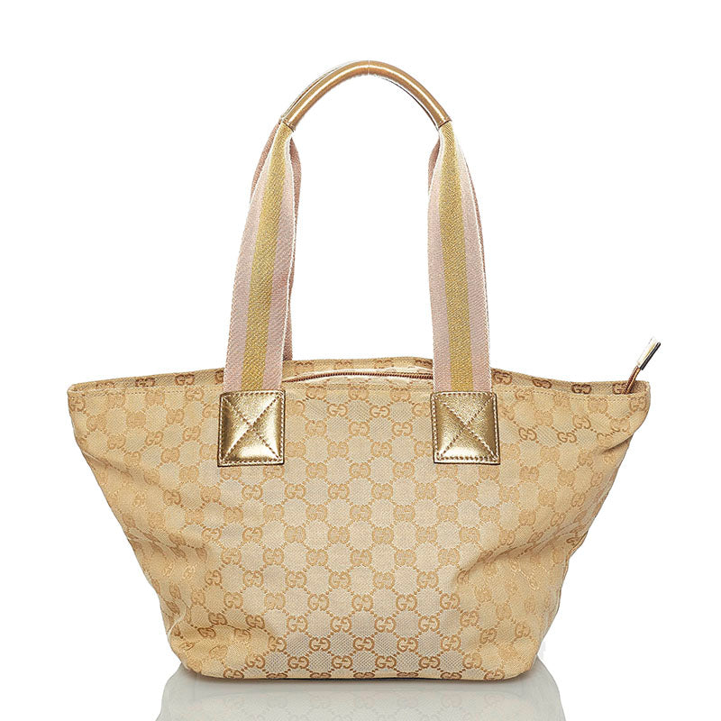 グッチ GGキャンバス シェリーライン トートバッグ 131230 ゴールド ピンク キャンバス レザー レディース GUCCI 【中古】