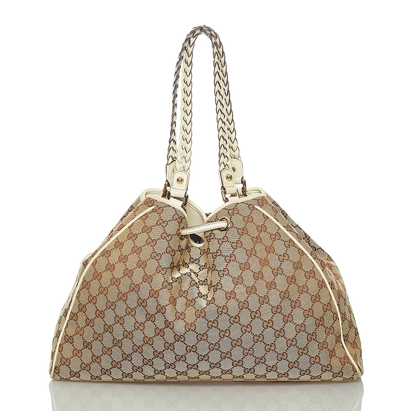 グッチ GGキャンバス タッセル トートバッグ ショルダーバッグ 170206 ベージュ ホワイト キャンバス レザー レディース GUCCI 【中古】