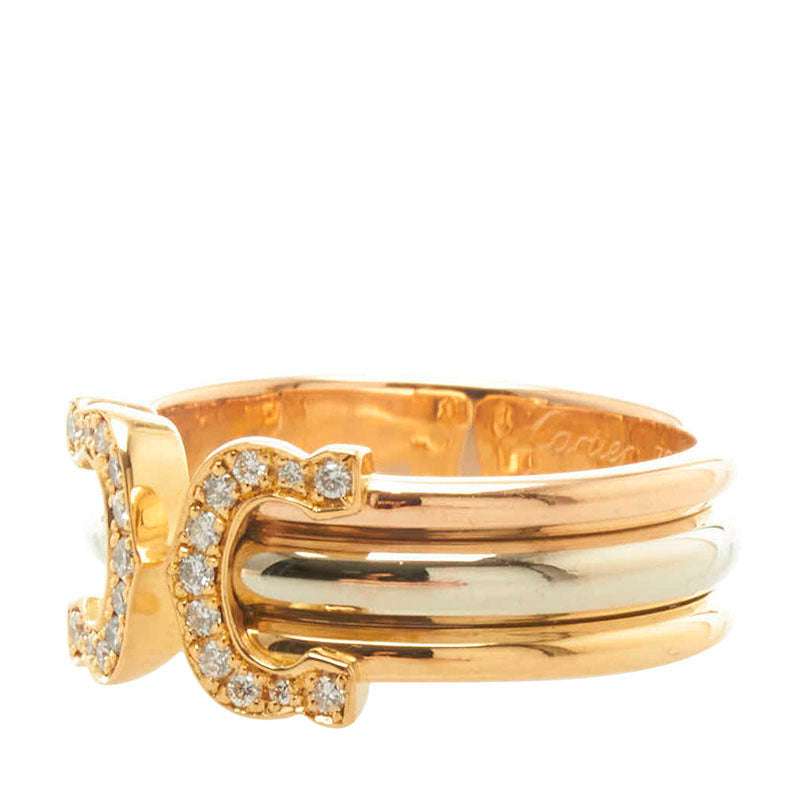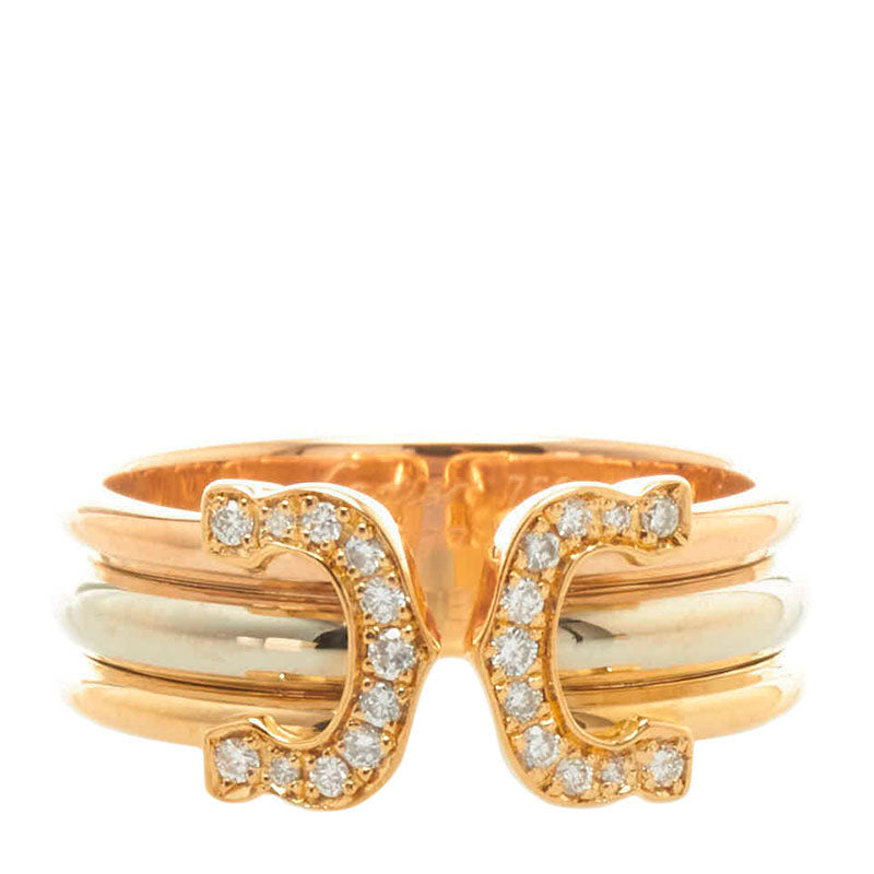 カルティエ K18YG イエローゴールド K18PG ピンクゴールド K18WG ホワイトゴールド ダイヤ 2C トリニティ ダイヤ リング 指輪 レディース CARTIER 8号 【中古】