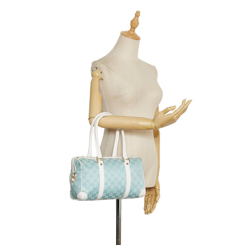 グッチ GGキャンバス ミニボストンバッグ ハンドバッグ 000 0851 ライトブルー ホワイト キャンバス レザー レディース GUCCI 【中古】