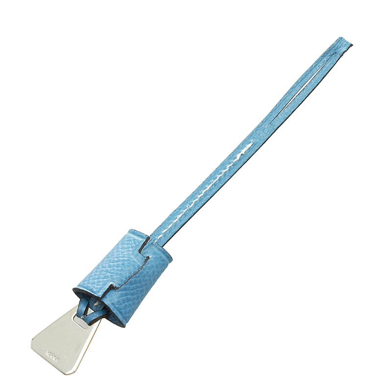 エルメス バッグチャーム ブルー レザー メタル レディース HERMES 【中古】