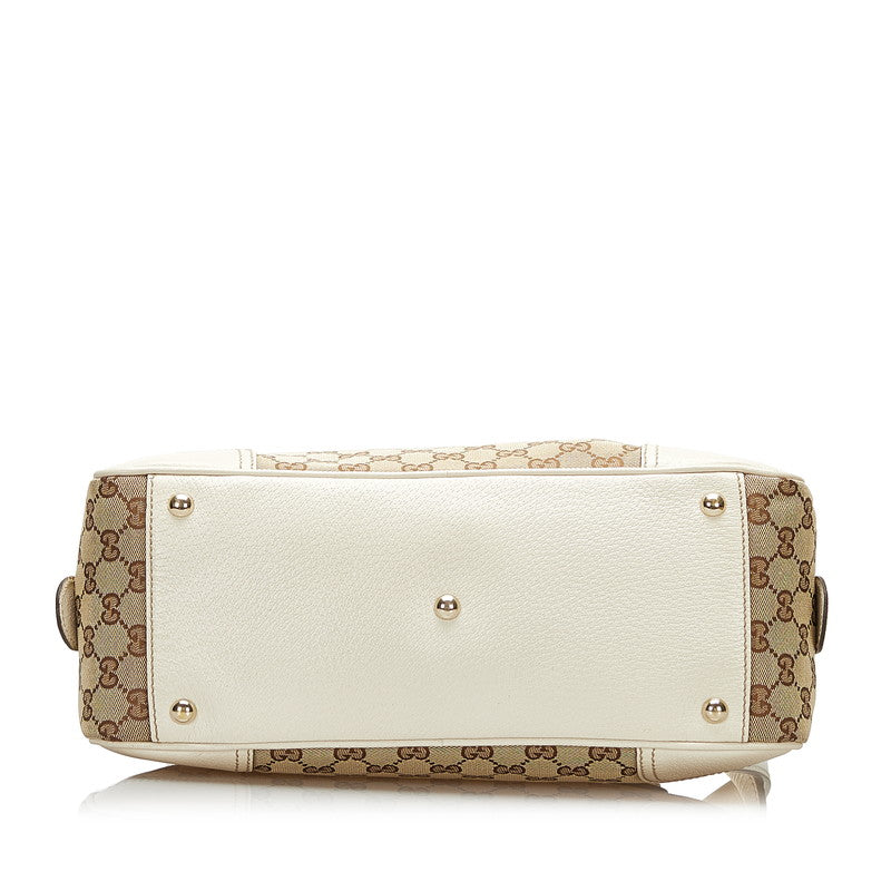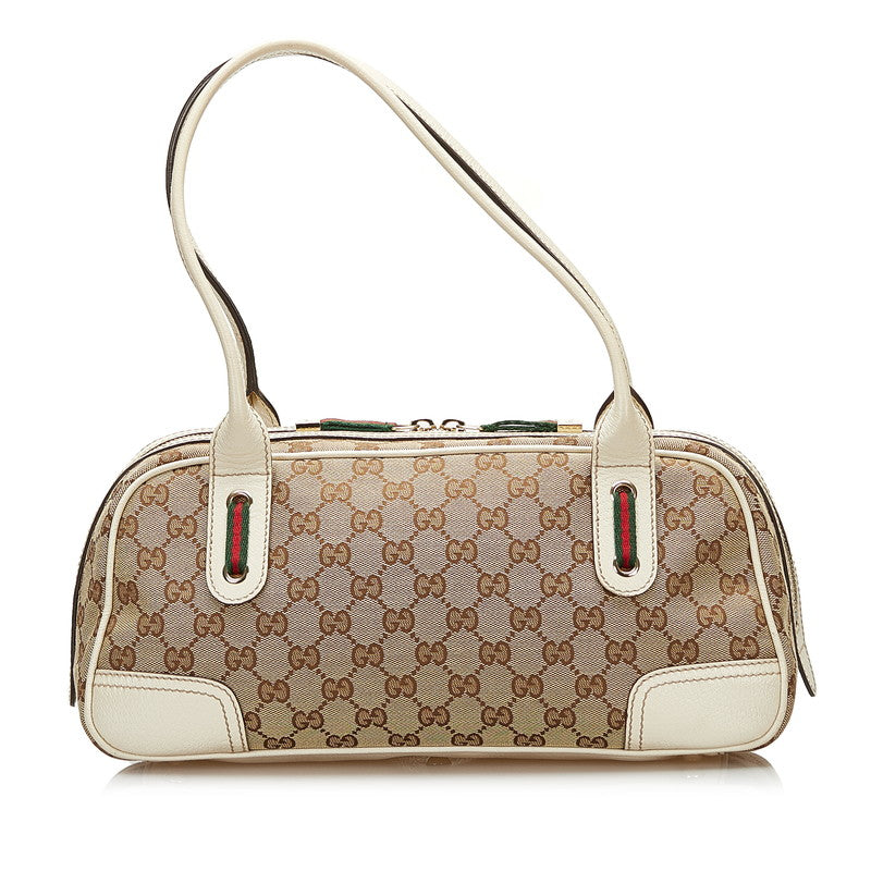 グッチ GGキャンバス プリンシー シェリーライン ハンドバッグ 161720 ベージュ ホワイト キャンバス レザー レディース GUCCI 【中古】