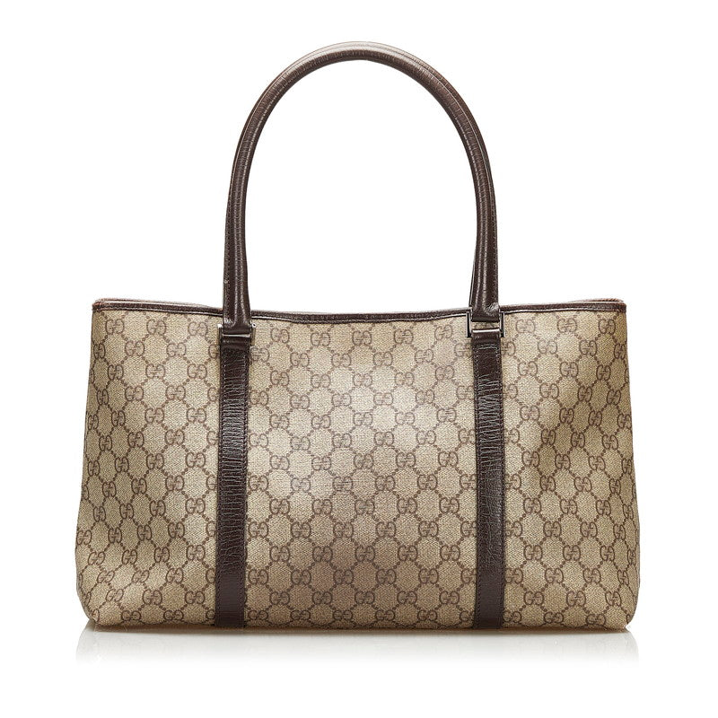グッチ GGスプリーム トートバッグ ショルダーバッグ 114595 ベージュ ブラウン PVC レザー レディース GUCCI 【中古】
