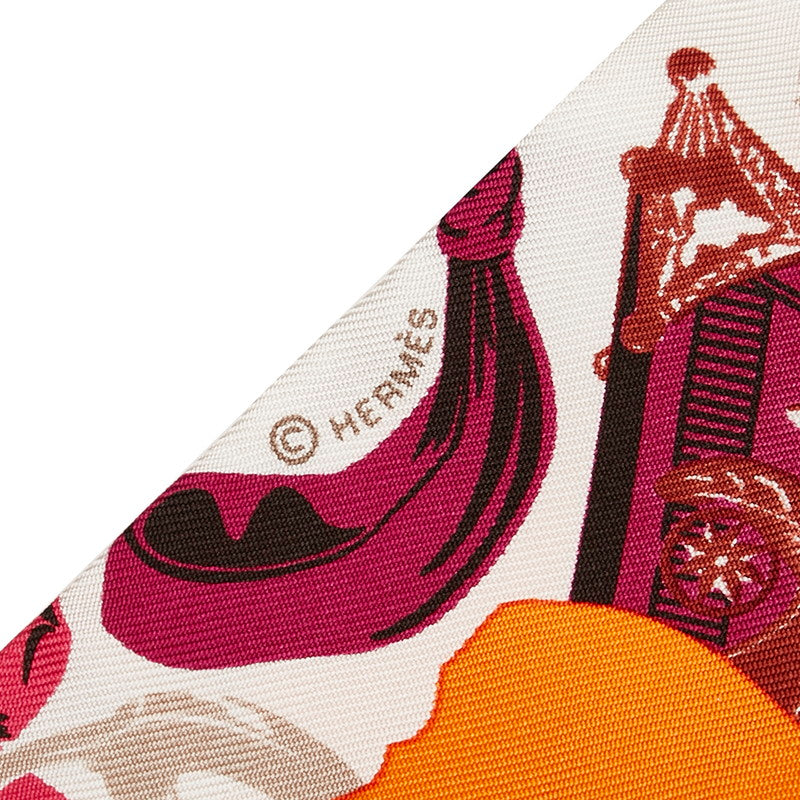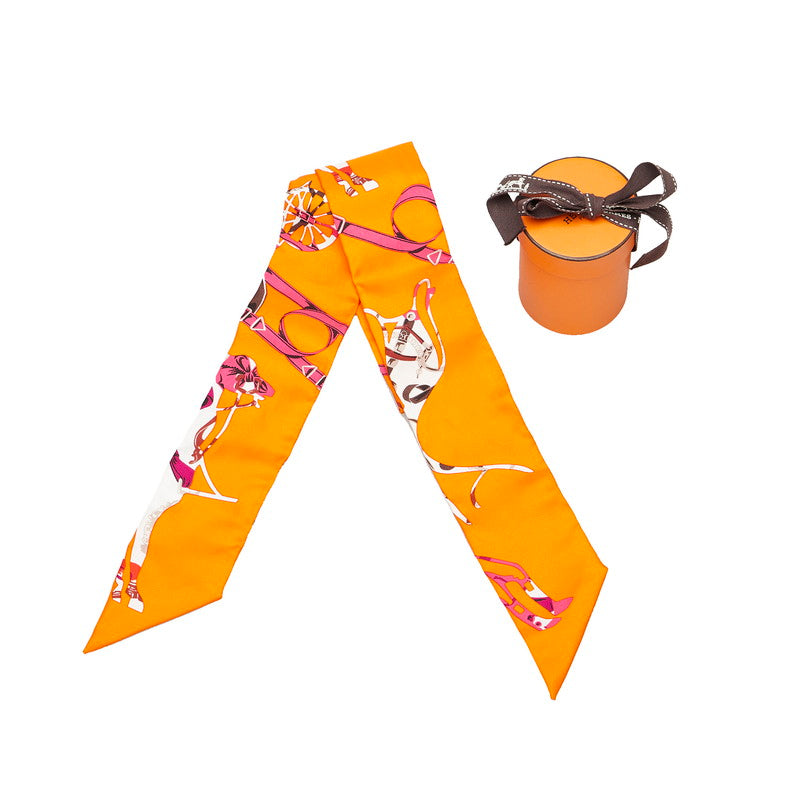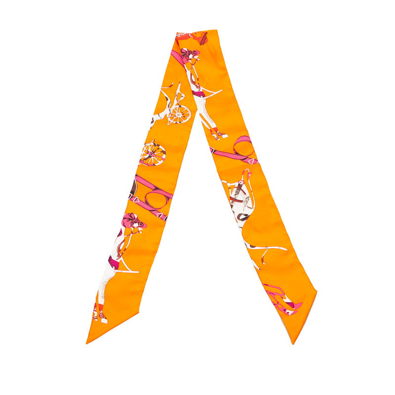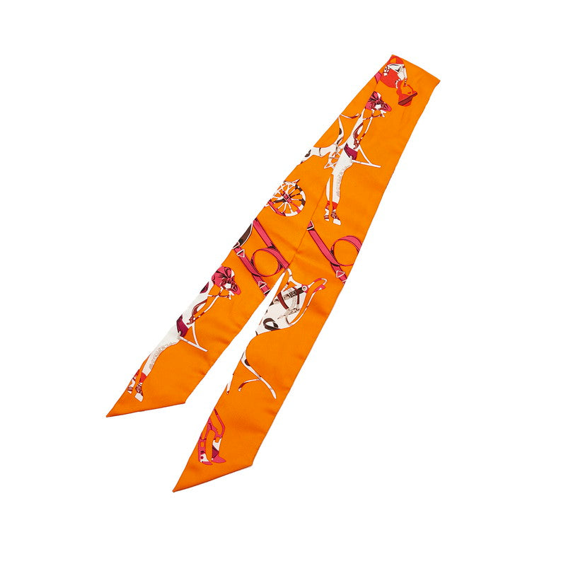エルメス ツイリー 総柄 スカーフ オレンジ ブラウン シルク レディース HERMES 【中古】