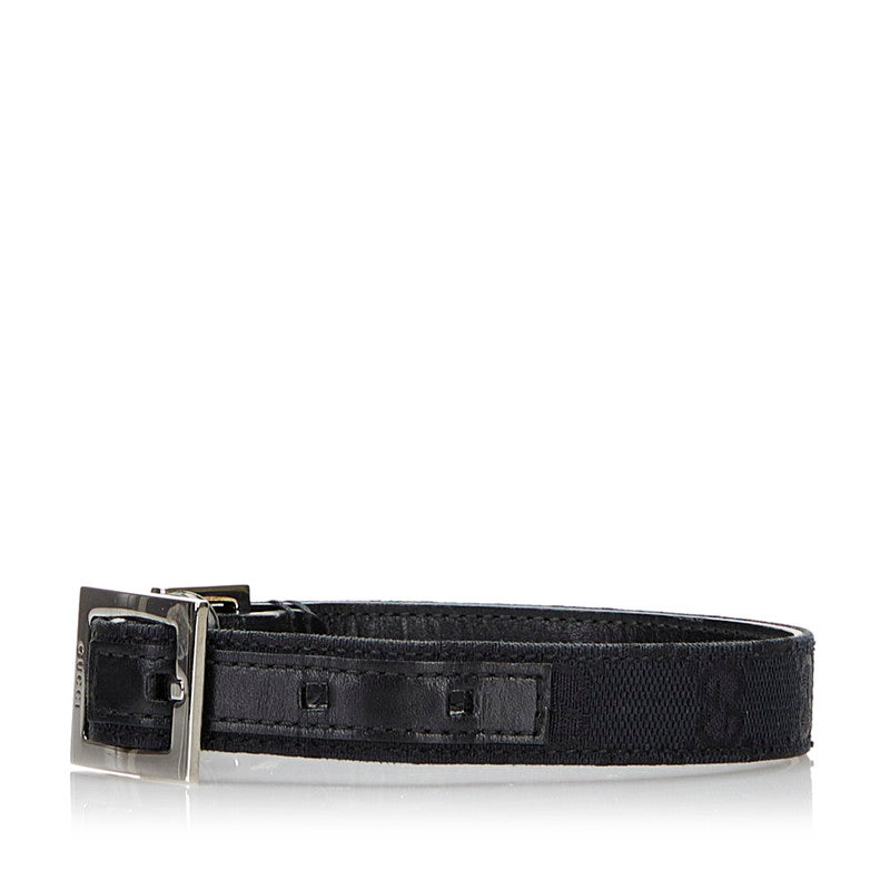 グッチ GGキャンバス ドッグ リード 首輪セット 小~中型犬 ブラック キャンバス レザー ユニセックス GUCCI 【中古】