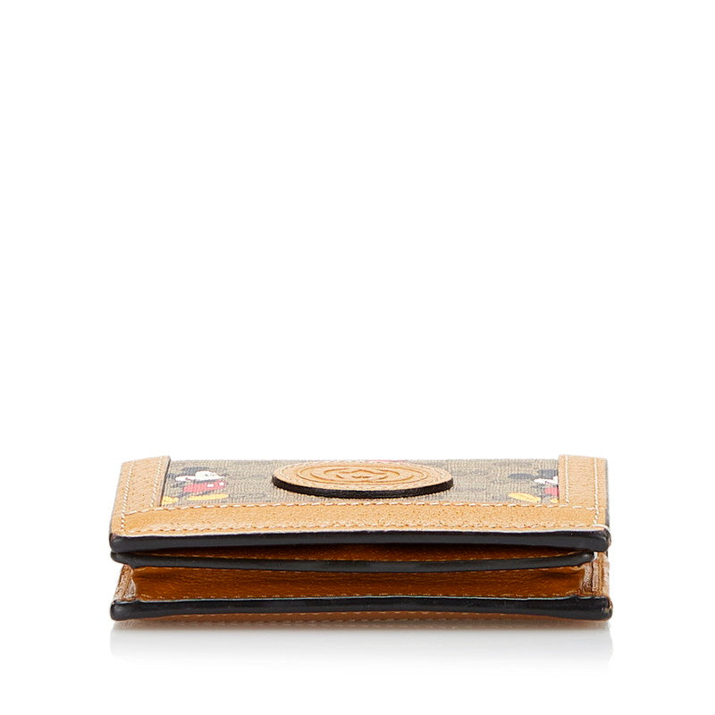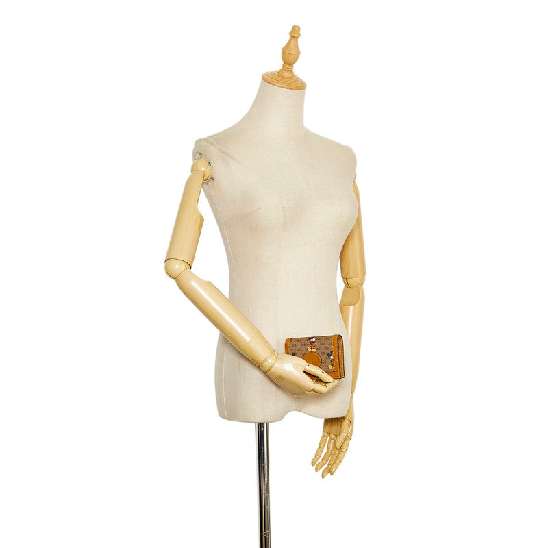 グッチ ×ディズニー ミッキーマウス コラボ GGスプリーム 二つ折り財布 コンパクトウォレット 602534 ブラウン PVC レザー レディース GUCCI 【中古】