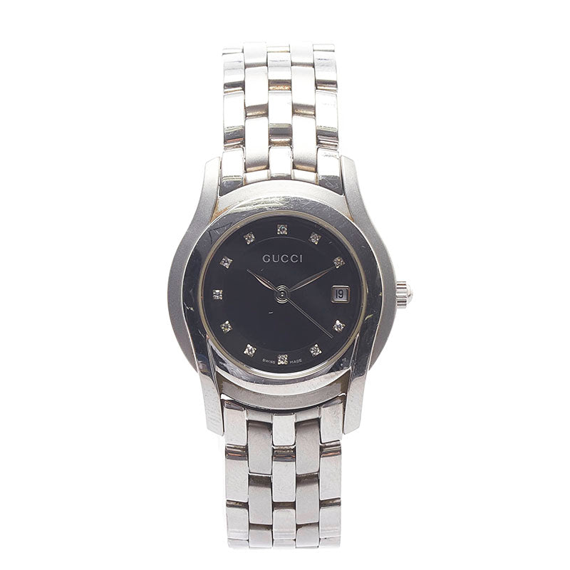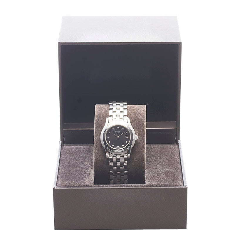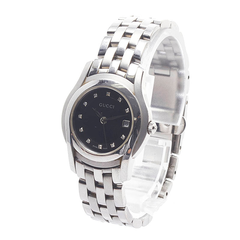 グッチ Gクラス 11Pダイヤ 腕時計 5500L クオーツ ブラック文字盤 ステンレススチール レディース GUCCI 【中古】