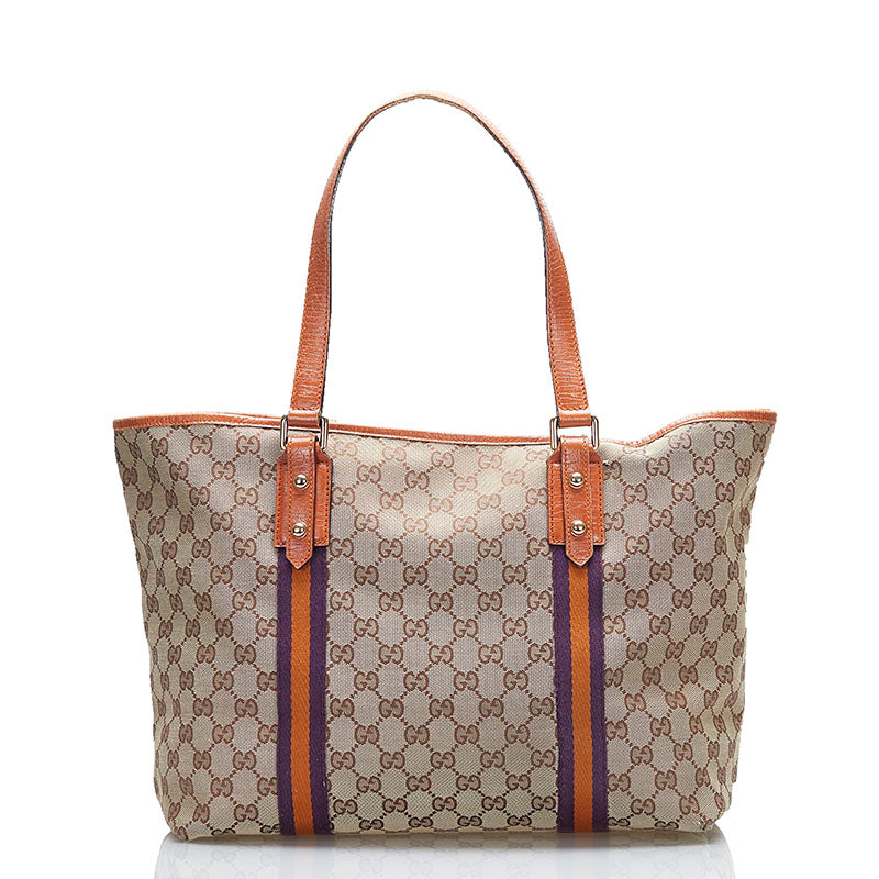 グッチ GGキャンバス シェリー トートバッグ 139220 ブラウン パープル キャンバス レザー レディース GUCCI 【中古】