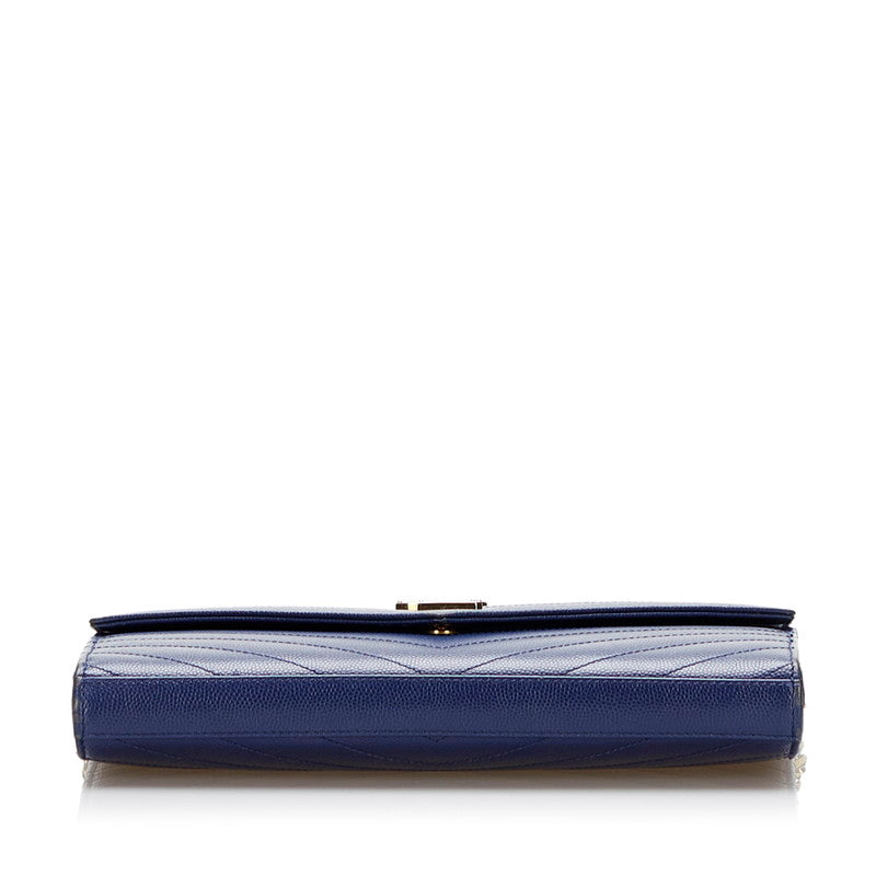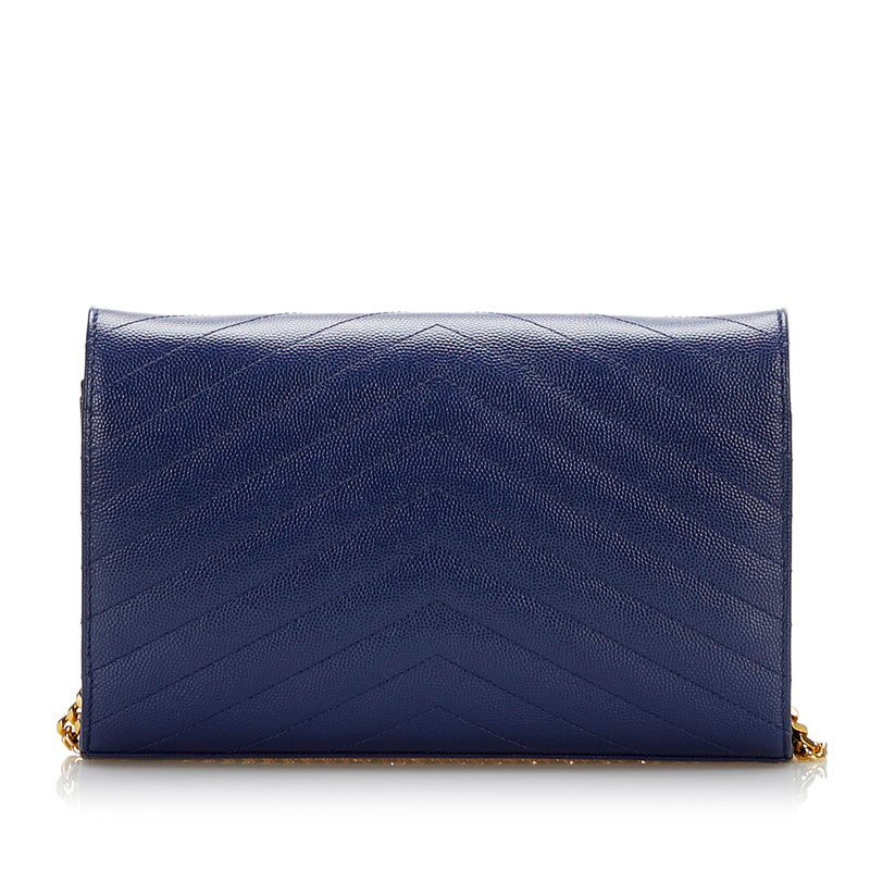 サンローラン YSL Vステッチ チェーンウォレット ショルダーバッグ 377828 ネイビー レザー レディース SAINT LAURENT 【中古】
