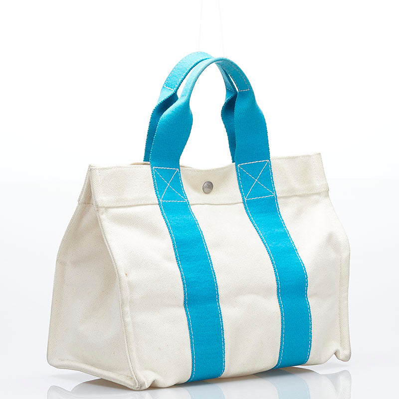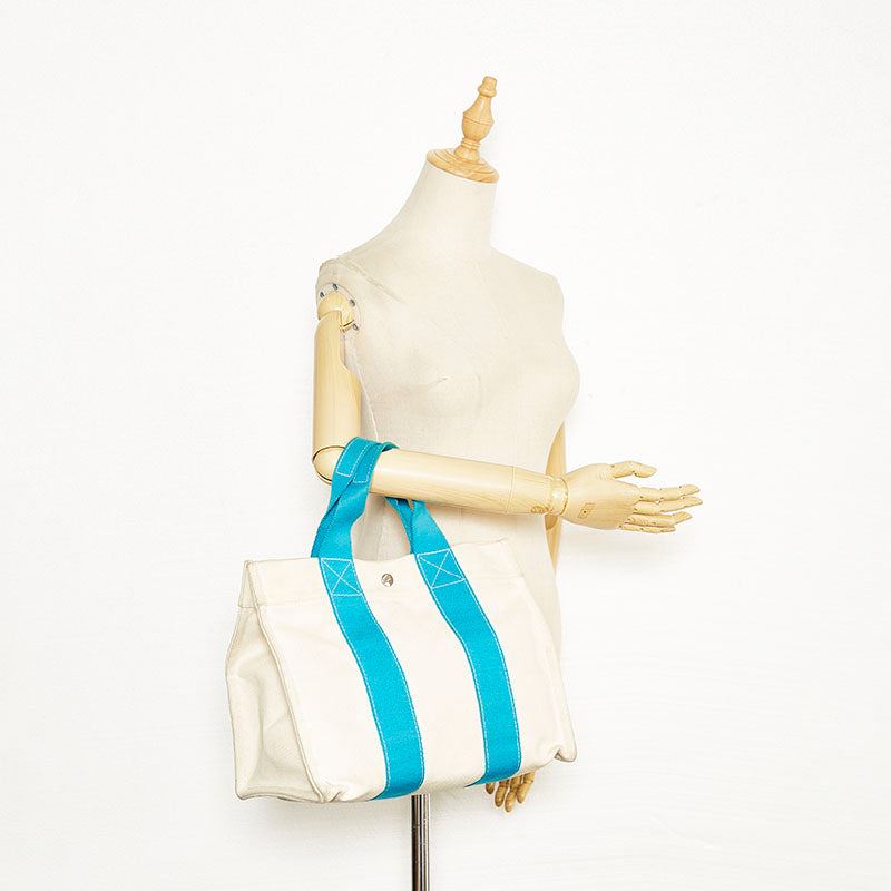 エルメス ボラボラPM トートバッグ ハンドバッグ ターコイズブルー ホワイト キャンバス レディース HERMES 【中古】