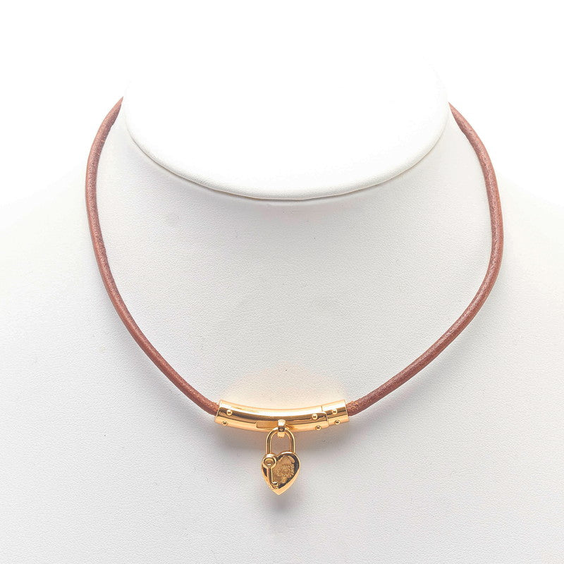 エルメス ヴィヴィリデ ハート カデナ チョーカー ネックレス ブラウン ゴールド レザー レディース HERMES 【中古】