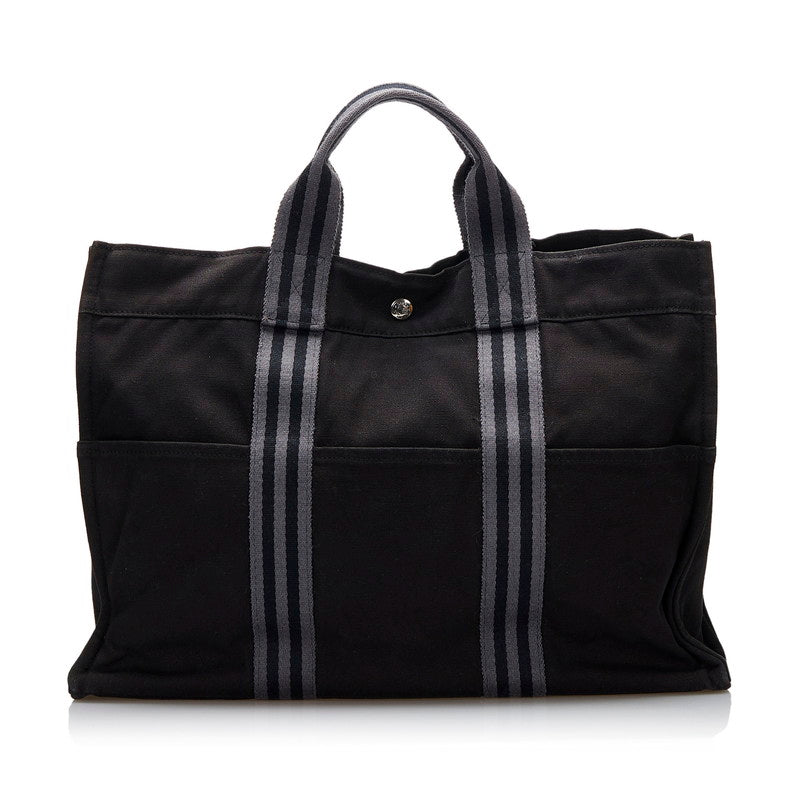 エルメス フールトゥMM ハンドバッグ トートバッグ ブラック キャンバス レディース HERMES 【中古】
