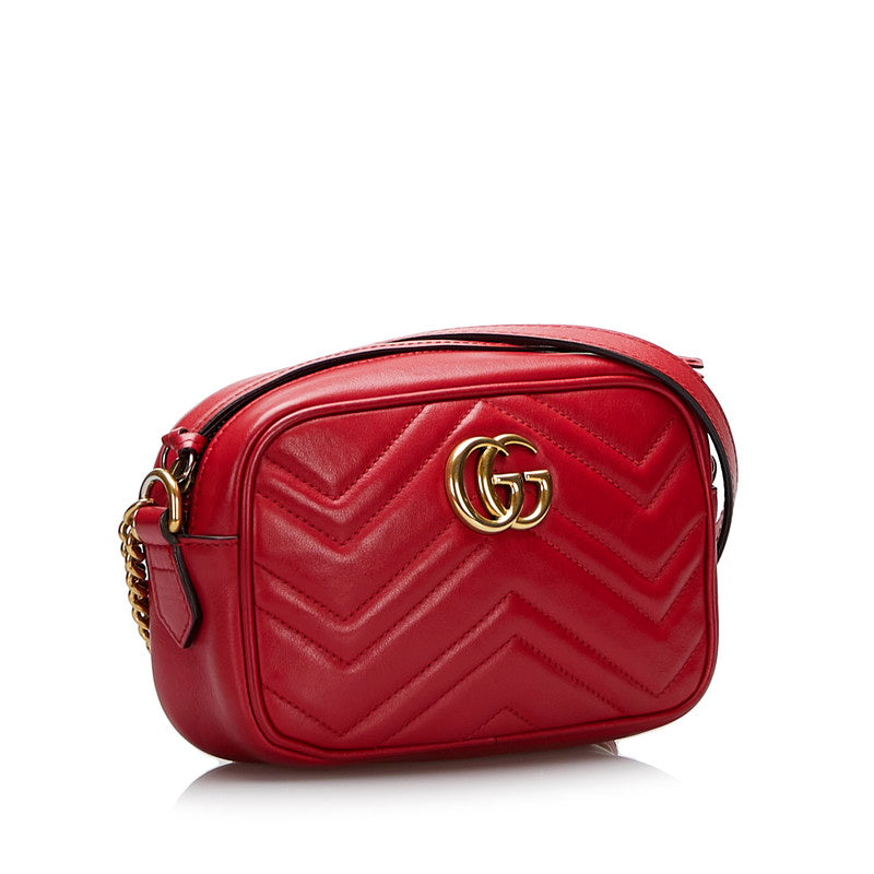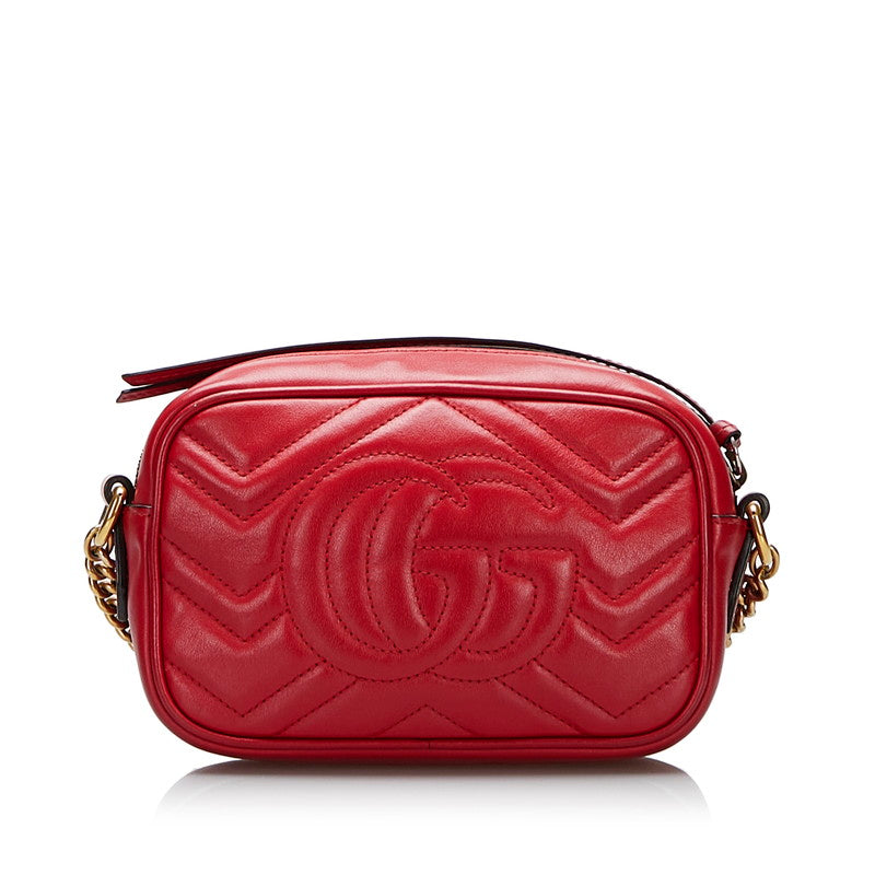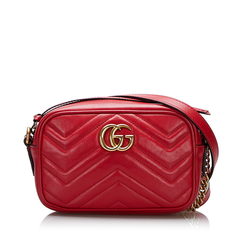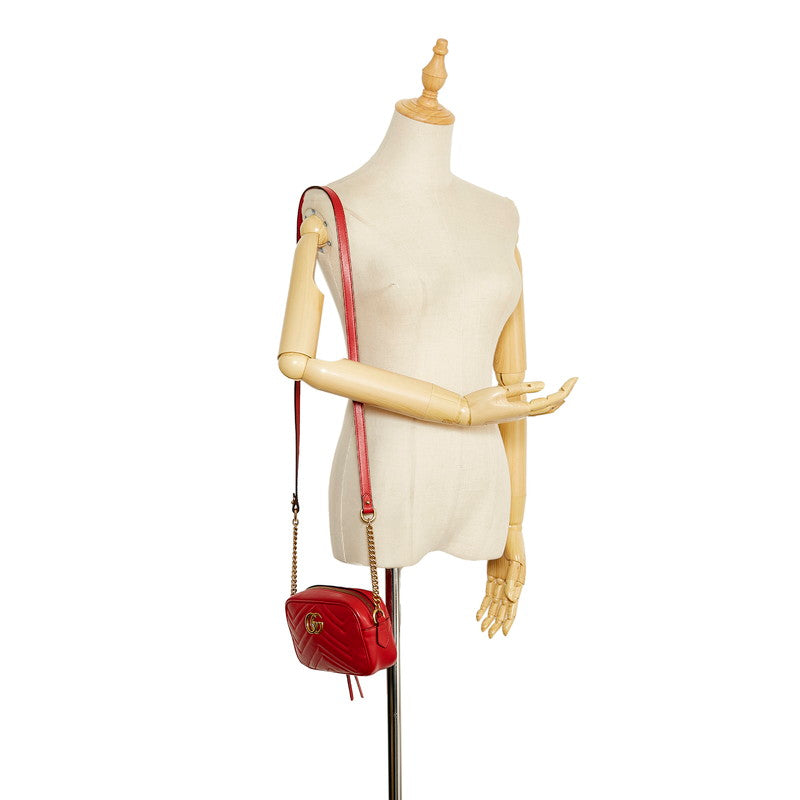 グッチ GGマーモント キルティング ミニバッグ 斜め掛け チェーン ショルダーバッグ 448065 レッド レザー レディース GUCCI 【中古】