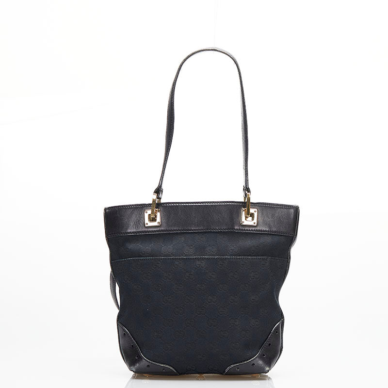 グッチ GGキャンバス ハンドバッグ トートバッグ 145994 ブラック キャンバス レザー レディース GUCCI 【中古】