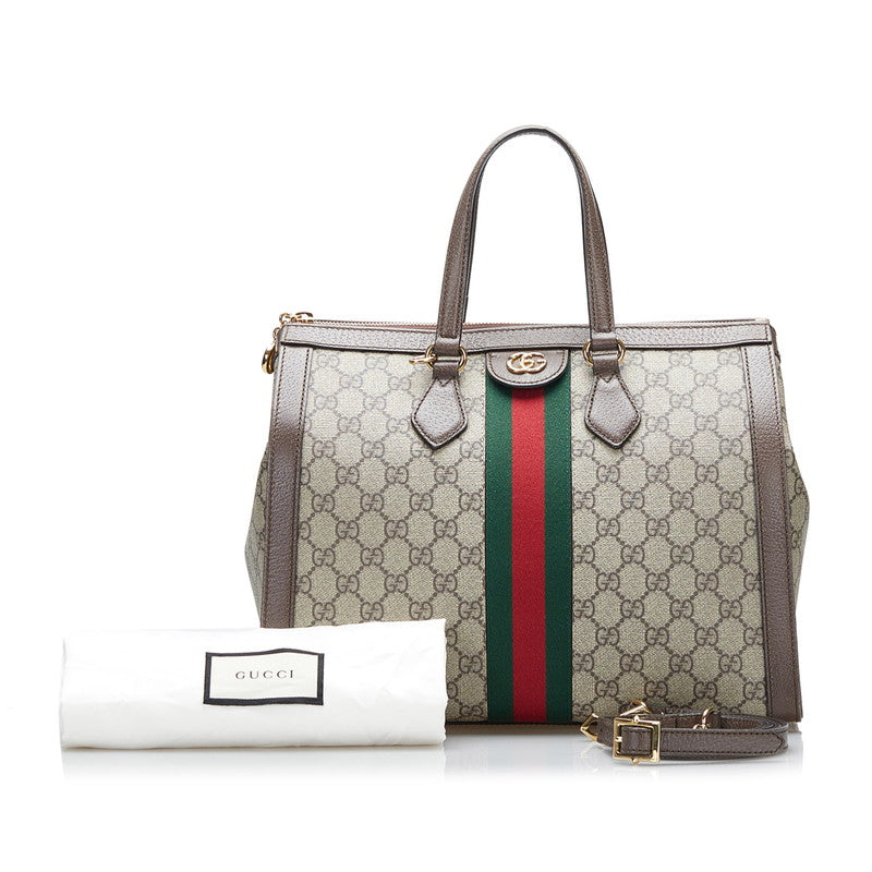 グッチ GGスプリーム シェリーライン オフィディア ハンドバッグ ショルダーバッグ 2WAY 524537 ブラウン キャンバス レザー レディース GUCCI 【中古】