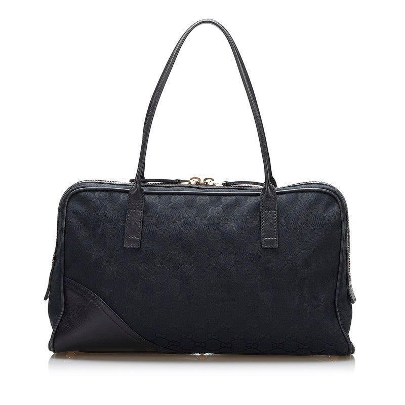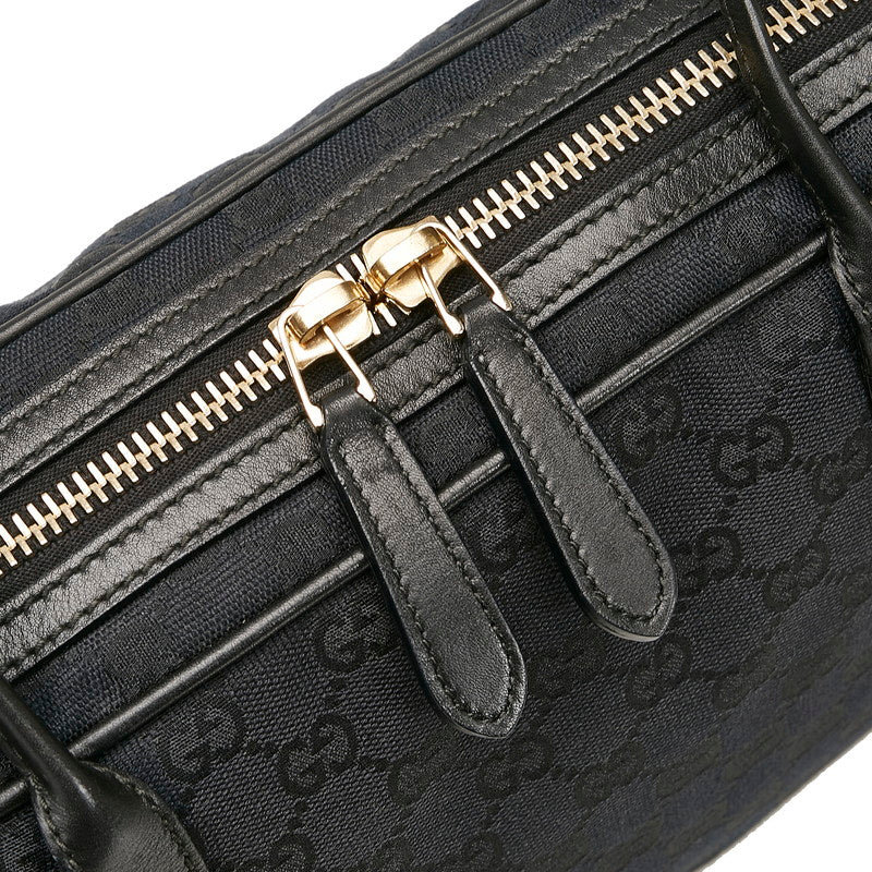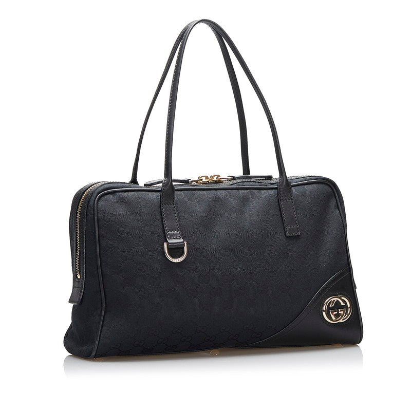 グッチ GGキャンバス インターロッキングG ハンドバッグ トートバッグ 169971 ブラック キャンバス レザー レディース GUCCI 【中古】