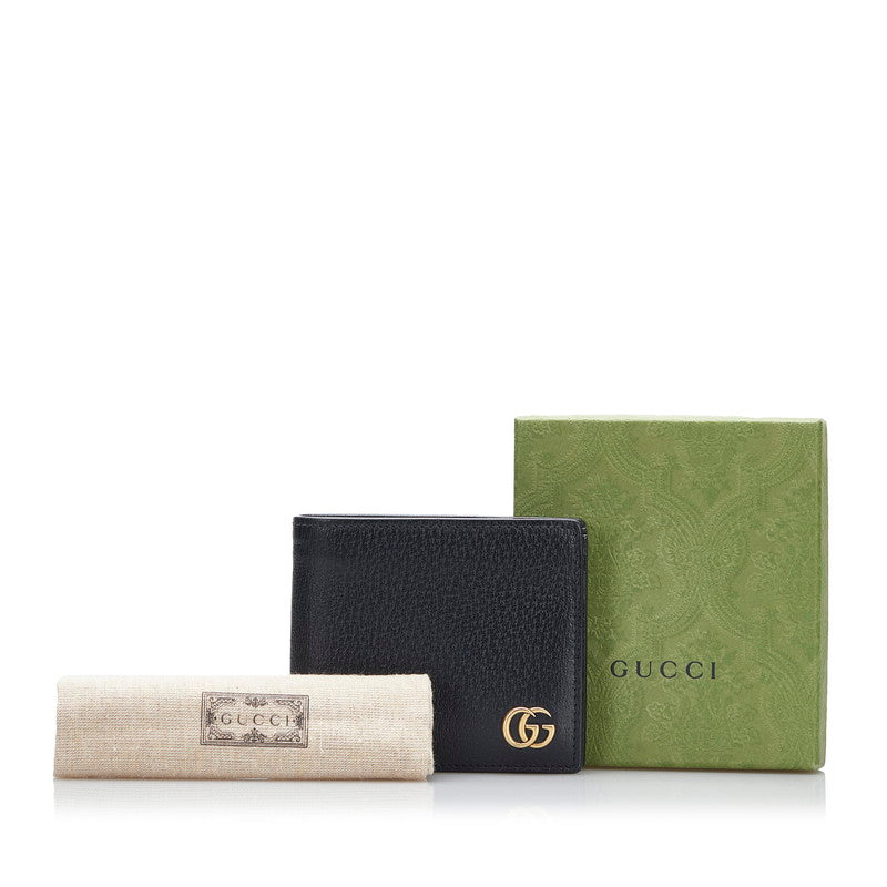 グッチ GGマーモント ダブルG 二つ折り財布 コンパクトウォレット 428725 ブラック レザー レディース GUCCI 【中古】